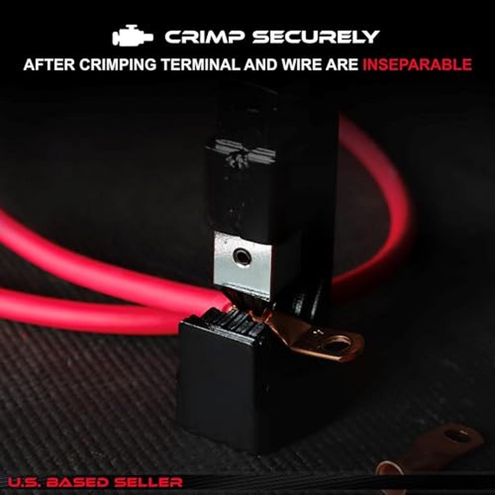 - [Easy to Use]: Adjust the battery crimping tool head with the lever; Fit stripped wire into terminal (not included) and into hammer cable crimper; Hold wire with one hand and hammer the lug crimper tool
