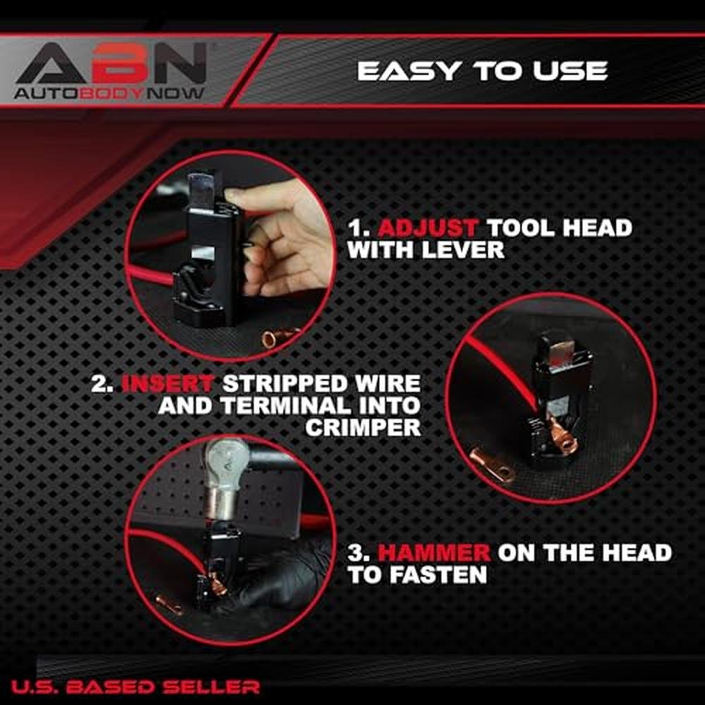 - [Battery Cable Crimper]: When creating battery cables, you can depend on the ABN Hammer Lug Crimper; Ensure that your small cables are securely fastened in place