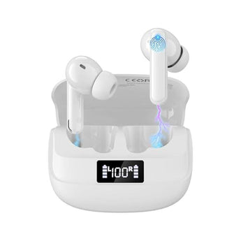 • 4.Charging and battery monitoring The charging case features a USB Type-C port, enabling faster charging. Its dual LED digital display allows direct access to the remaining battery life and the charging status of these wireless earbuds. Each earbud provides 10 hours of playback time, and with the charging case, you can enjoy a total playback time of 40 hours. Additionally, charging these noise cancelling earbuds for just 10 minutes provides 1.5 hours of playback time.