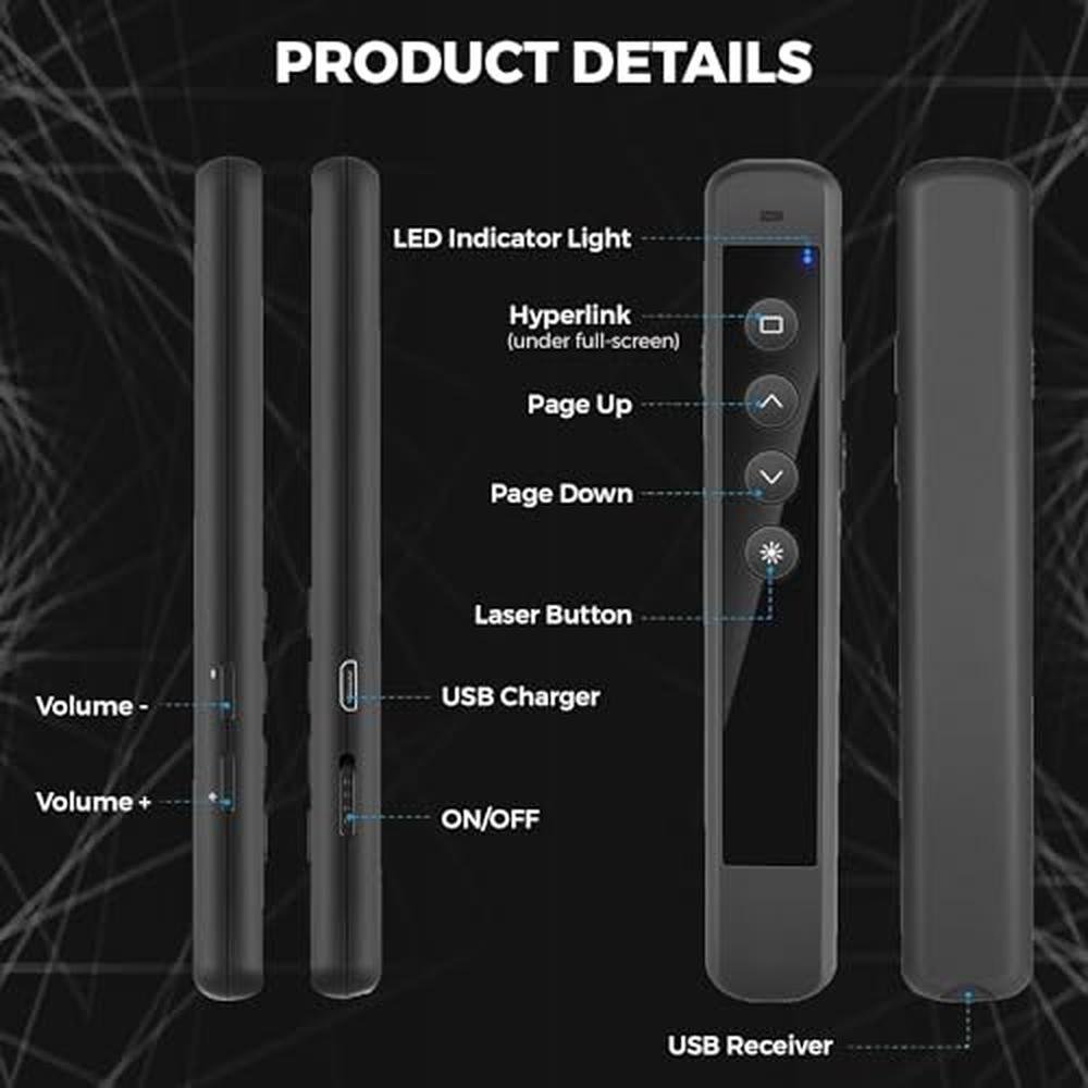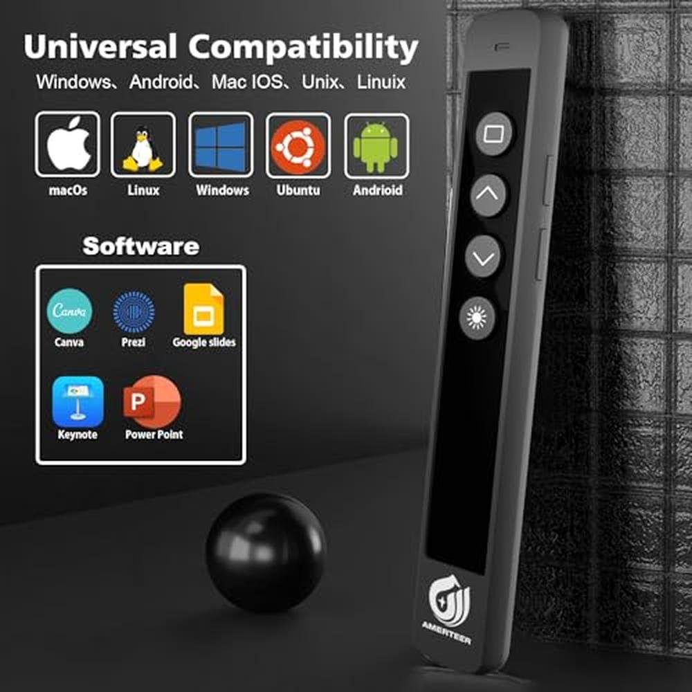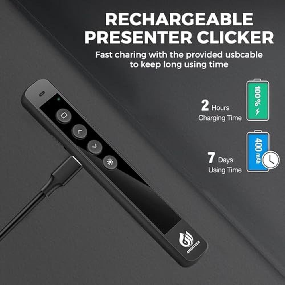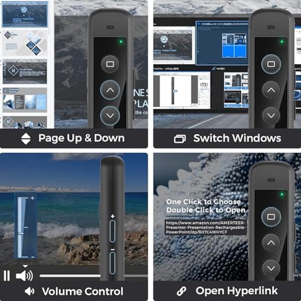 AMERTEER Wireless Presenter Remote, Presentation Clicker with 2.4GHz RF Hyperlink & Volume Control, Built-in Rechargeable Battery, Compatible with Keynote, PowerPoint, Mac, PC, and Laptops