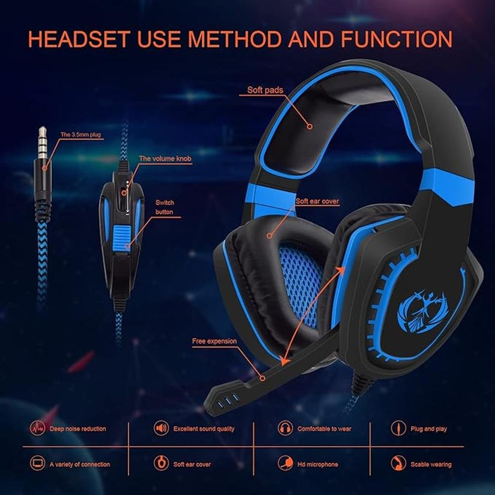 Anivia Computer Over Ear Headphones Wired with Microphone Updated AH28 3.5mm Stereo Headsets Gaming Headset with Volume Control, Noise Isolating for Multi-Platform, Black Blue