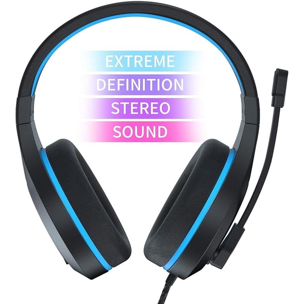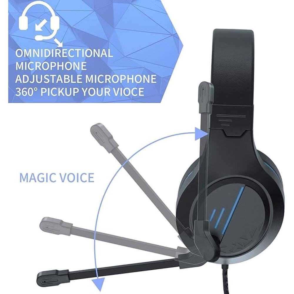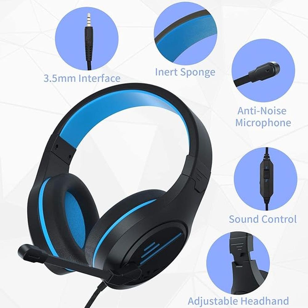 Anivia MH601 Blue Headphones with Microphone Wired Headset with Active Noise Canceling Microphone, 3.5mm Audio Jack Stereo Headphone (Game/Work/School)