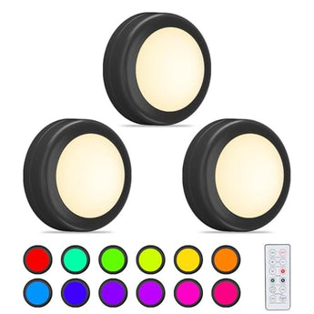 • Remote Control Puck Light: The night light with wireless remote control allowing you to control the lights remotely and set the color, brightness and timing. Press "+" or "-" to get your wanted light(5 levels to adjust) and the timing function of 30min and 60min