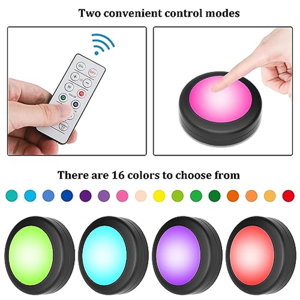 Aokpsrt Puck Lights with Remote Control, 16 Color Changeable Under Cabinet Lights, Battery Operated Wireless Led Lights with Dimmer & Timmer for Closet, Bedroom,Kitchen (3 Packs)