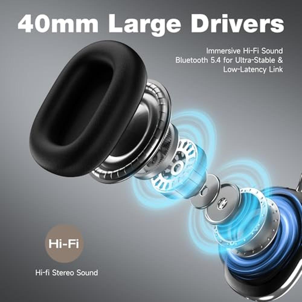 Immerse yourself in pure sound with our ANC noise-cancelling headphones, featuring advanced technology that blocks up to 95% of ambient noisefrom rumbling subways to airplane engines. Equipped with a high-resolution 40mm dynamic driver, these over-ear wireless headphones deliver crisp, balanced Hi-Fi audio with rich bass. Take clear calls using the built-in microphone, or seamlessly switch between two devices at once with Bluetooth 5.4 dual connection. Enjoy up to 120 hours of playtime in ANC-off mode, and continue listening worry-free with the included 3.5mm audio cable. Perfect for travel, work, or everyday use.
