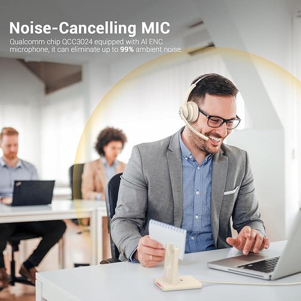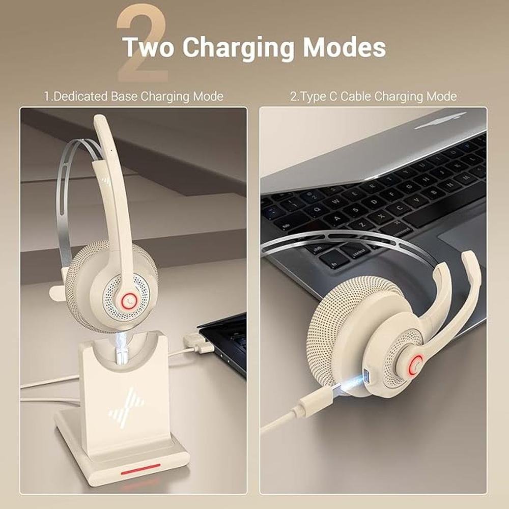 Immerse yourself in the world of seamless audio connectivity with our premium wireless headset, expertly designed to deliver crystal-clear sound and advanced noise cancellation. Featuring a sophisticated noise cancelling microphone and cutting-edge V5.2 technology, this high-end bluetooth headset is tailored for professionals seeking top-tier performance for work, call centers, online classes, and Zoom meetings. With a convenient USB dongle, charging base, and intuitive mic mute function, you can elevate your productivity and stay focused throughout the day. Whether you're in the market for a reliable bluetooth headset under 1000 or a superior bluetooth headset with microphone, our refined wireless headset is the ultimate solution. Experience unparalleled audio clarity and discover a new dimension of sound with our exquisite wireless headset.