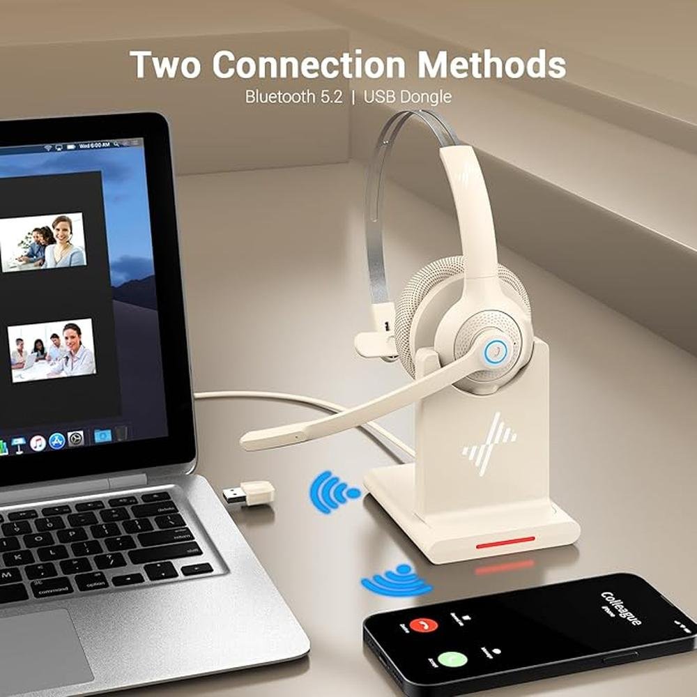 Bluetooth Headset - Wireless Headset with Noise Cancelling Microphone, V5.2 Computer Headphones with USB Dongle, Charging Base & Mic Mute for Work/Call Center/PC/Laptop/Online Class/Zoom