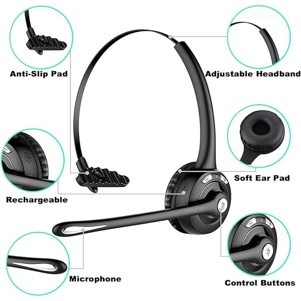 Bluetooth Headset with Microphone 12 Hours Talking Time for Trucker Wireless HeadsetsTruck Driver Call Center Skype Home Office PC