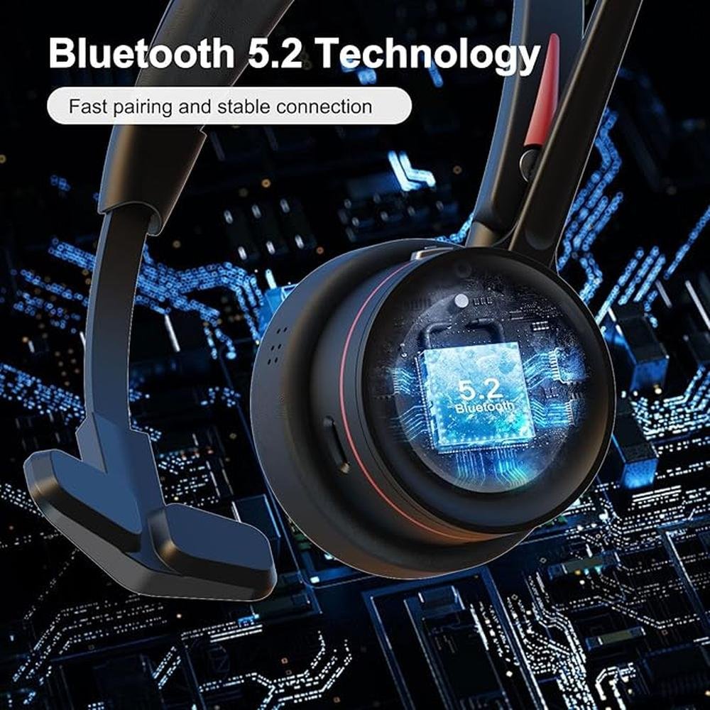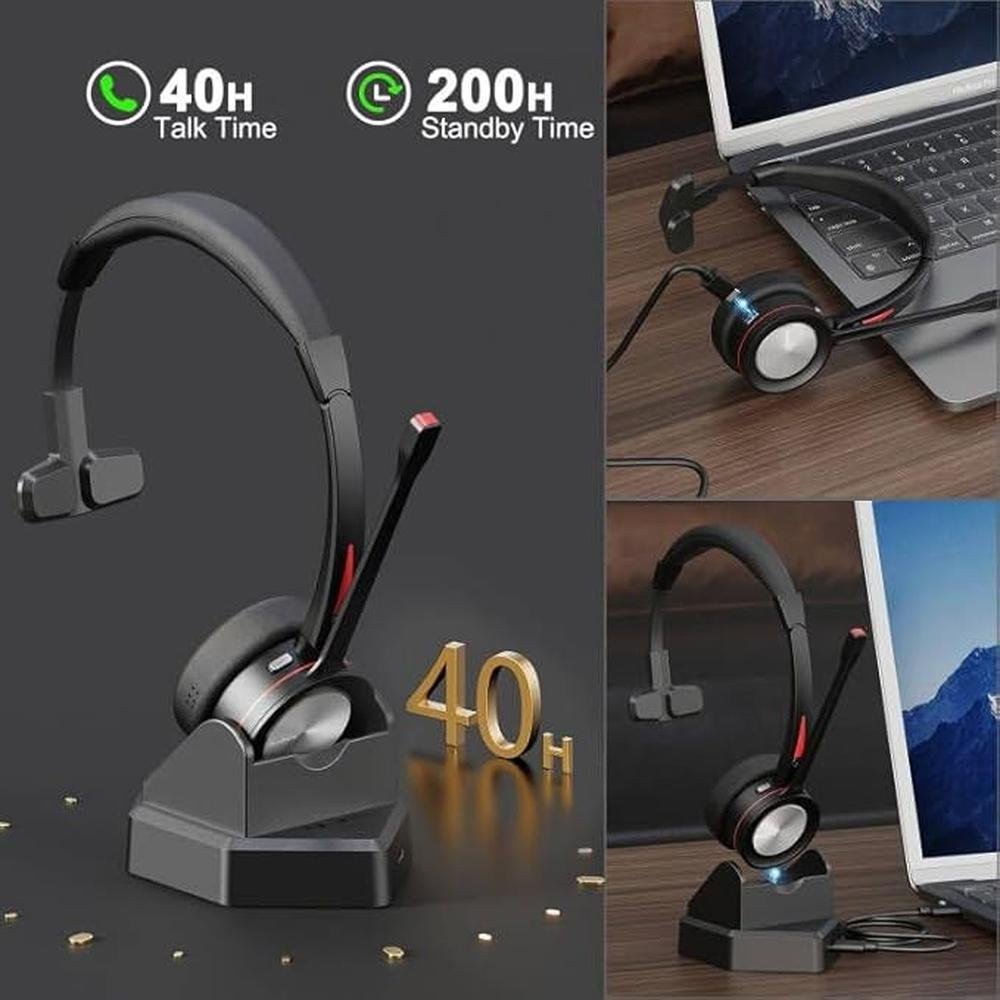 Bluetooth Headset with Microphone for PC, Wireless Headset with Mic & Mute Button, 40 Hrs Working Time, Mono Noise Cancelling Bluetooth Headset 5.2 for Work Laptop Teams Business Meeting