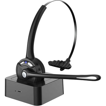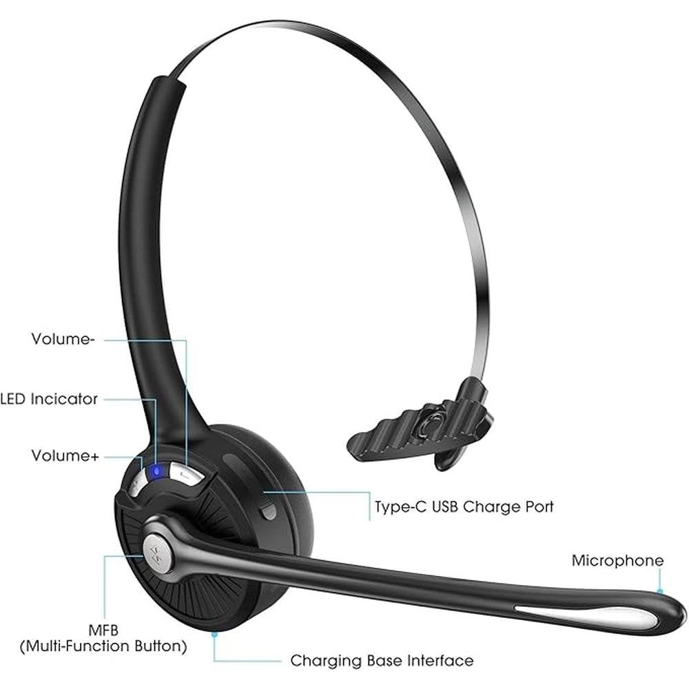 Bluetooth Headset with Microphone, Noise Canceling Wireless On Ear Headphones, Bluetooth Headphones with Mic Charging Base, Phone Headset Mute Button for Laptop, Skype, Call Centers, Office, Trucker