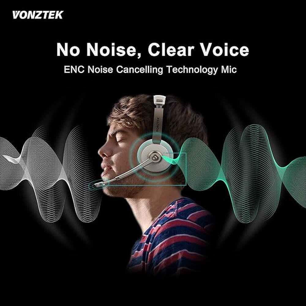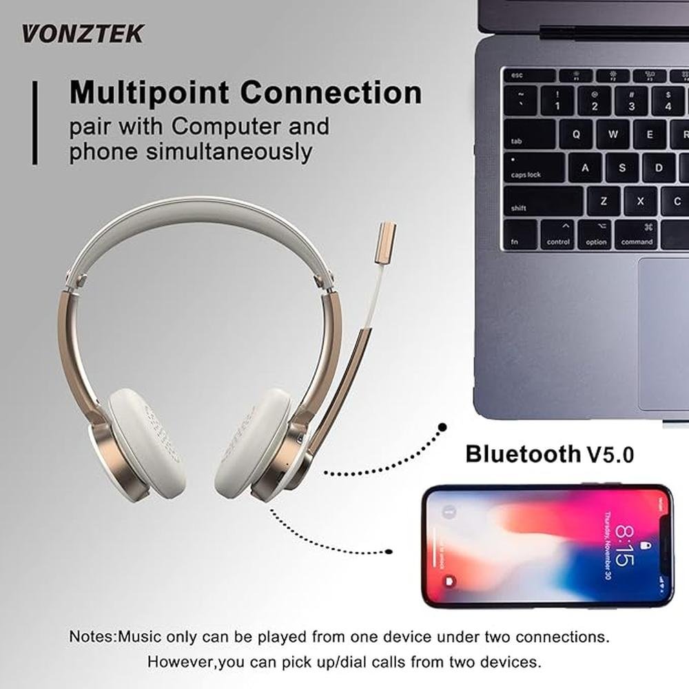 Bluetooth Headset with Microphone, Wireless Headphones with Noise Cancelling Mic, 26hrs talktime, On Ear Headphones with Mic Mute for Mac/Laptop/Zoom/Teams/Call Center/Office/Home Gold