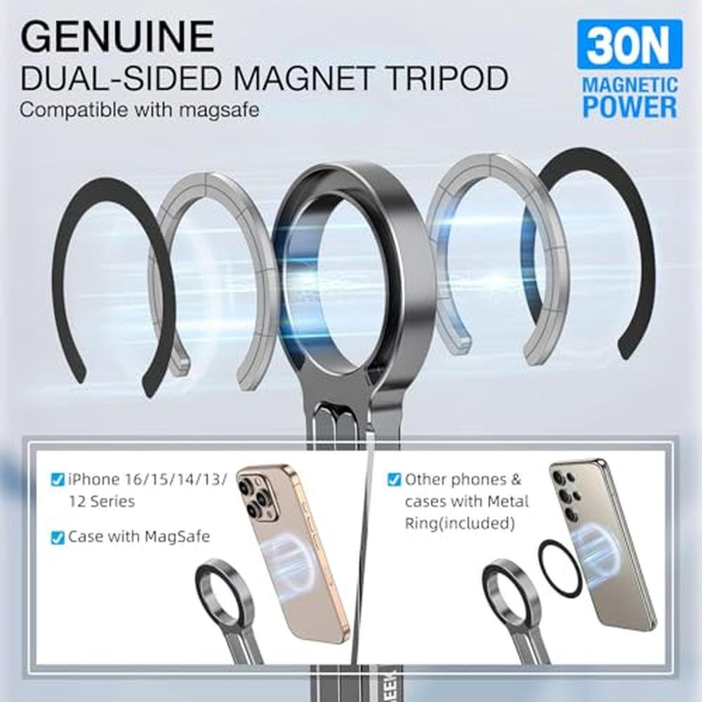 - Versatile Magnetic tripod stand compatible with Magsafe iPhone 16 15 14 13 12 series or or with MagSafe phone cases or use with a magnetic ring sticker. fits - Vlog - Action Photography - Live Streaming - Online Meeting