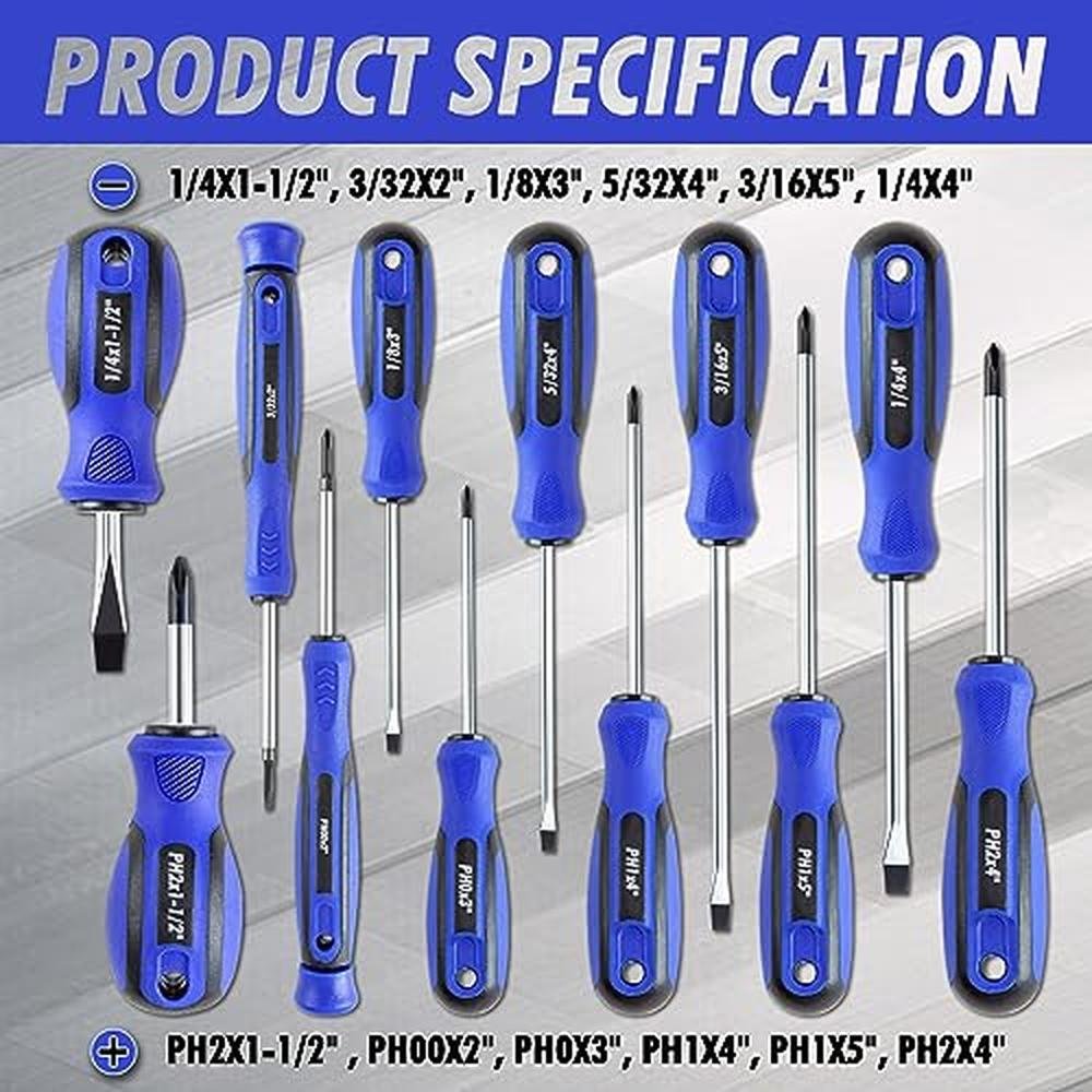 - Non-slip and soft handle provides you a comfortable hold as well as maximum control at work. Handle slot accepts other screwdrivers for added leverage.