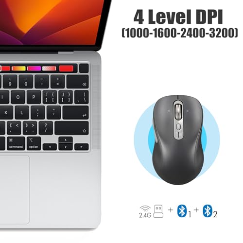 Experience the convenience of seamless connectivity with the CITLLA L570 Wireless Bluetooth Mouse, designed to provide a reliable and efficient computing experience. As a premium bluetooth multi device, this mouse allows you to connect to multiple devices simultaneously, including your MacBook Air/Pro, iPad, laptop, or computer, making it an ideal accessory for multitaskers. With its advanced bluetooth multipoint technology, you can effortlessly switch between devices, streamlining your workflow and enhancing productivity. The mouse features a rechargeable design, 4-level DPI adjustment, and a 4-way scrolling wheel, providing precision and control. Compatible with multiple systems, the CITLLA L570 Wireless Bluetooth Mouse comes with a USB-A receiver and supports two Bluetooth connections.