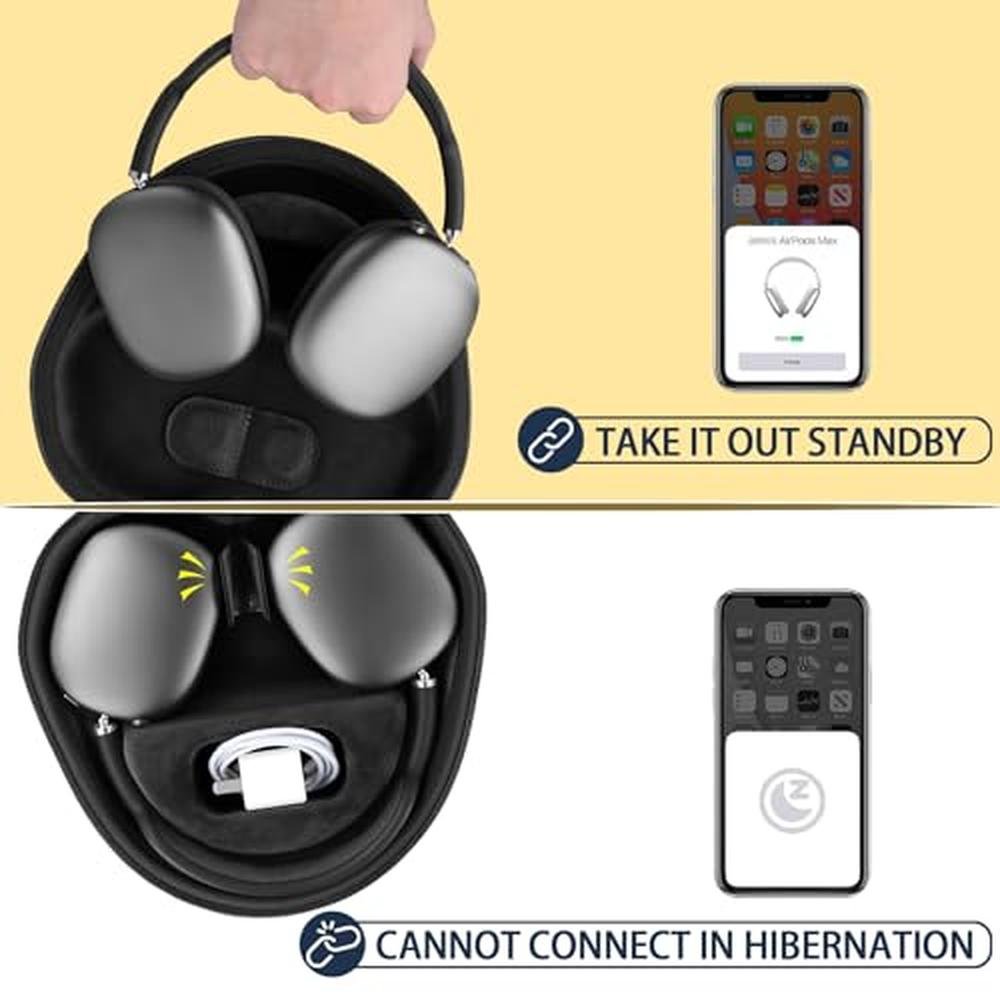 - This Protection Case is Exclusive for Aiprods Max Headphone. Perfect fit for your AirPods Max Headphone and has more space to accommodate the chargers and more accessories. The AirPods Max Headphone can be placed in this case alone or used with the Smart Case. The magnetic device on the bottom allows the Airpods Max to enter the dormant state.