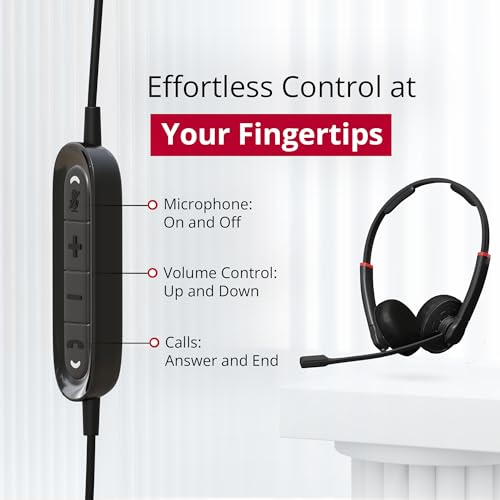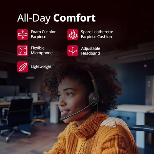 Immerse yourself in crystal-clear audio with our noise-canceling headphones with mic and 7.8 cable, delivering exceptional voice quality for improved support in any environment. Designed for extended wear, our computer headsets ultra-lightweight construction, adjustable headband, and soft ear cups guarantee comfort, reducing fatigue to keep you focused and productive throughout the day.