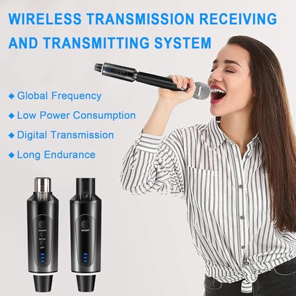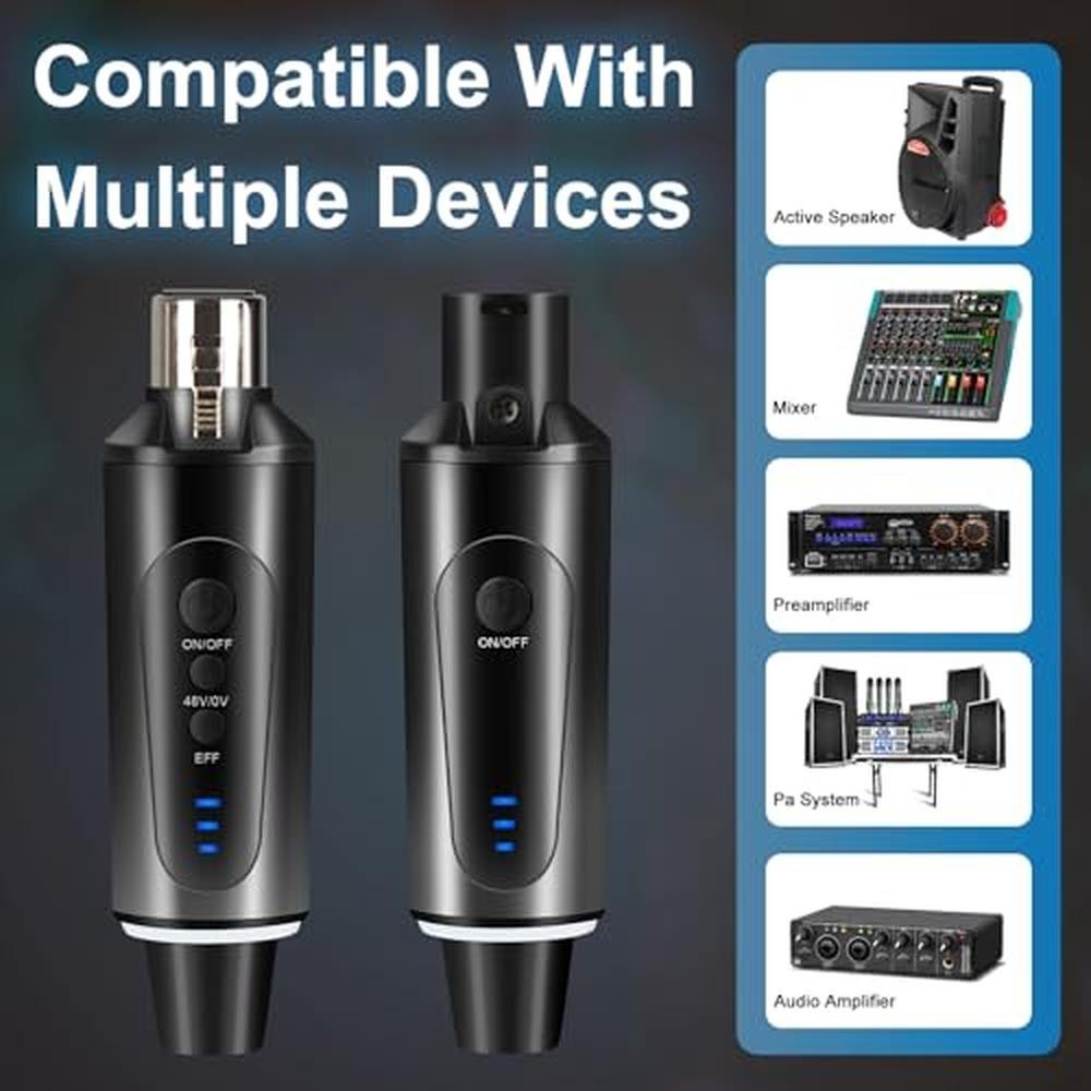 • Wireless XLR transmitter and XLR receiver : Designed for any dynamic/48V condenser microphone, no cables required. Can be used with audio mixer, PA systems, guitar bass instruments, etc.