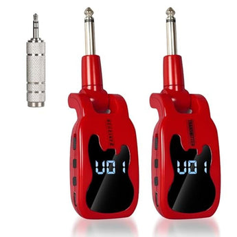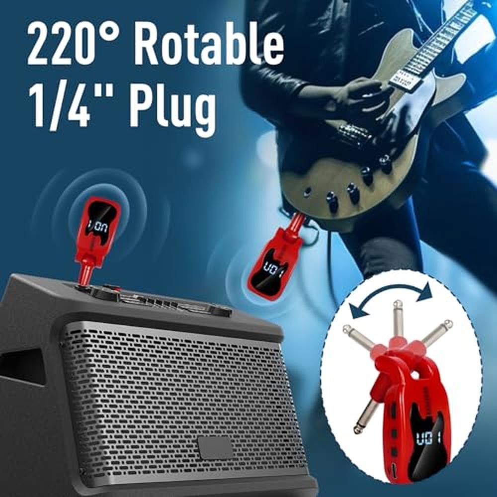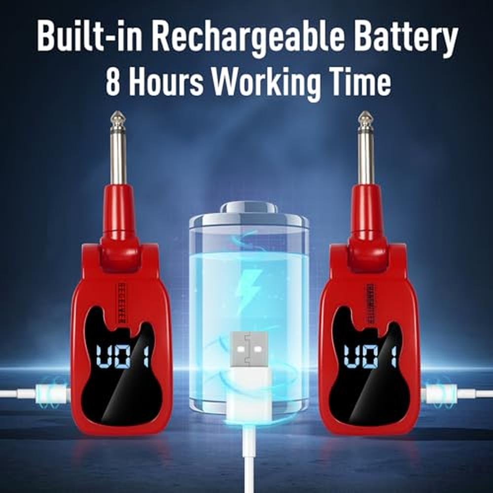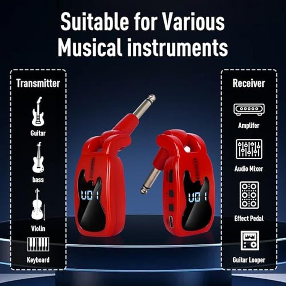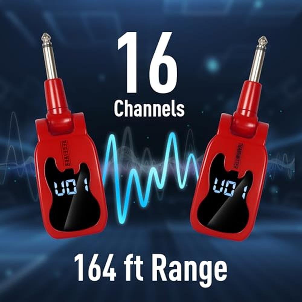 DevilClaw Wireless Guitar System with 16 Adjustable Frequencies, Rechargeable Wireless Guitar Transmitter Receiver for Guitar Bass Electric Instruments (Red)