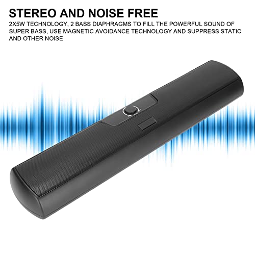Explore the features of the Dilwe Soundbar, including its upgraded 2x5W technology, magnetic avoidance technology, and noise suppression, which provide a powerful, stereo sound experience. The simple, integrated design saves desk space, reduces cable clutter, and keeps your desk organized. The top volume knob makes it easy to control the volume, and the plug-and-play connectivity eliminates the need for drivers or software.