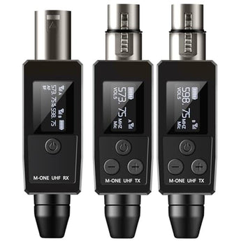 - EBJ M-ONE Wireless XLR transmitters and receivers, the UHf band is best suited for microphone wireless,uncompressed wireless signal transmission, low noise and latency. A signal-to-noise ratio of up to 107 dB deliversclear, delicate audio at any volume. High resolution 24.