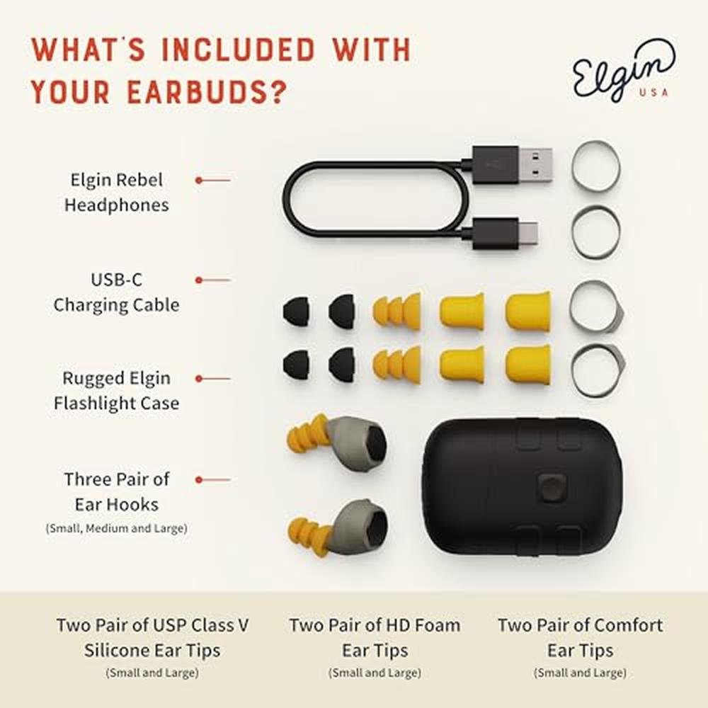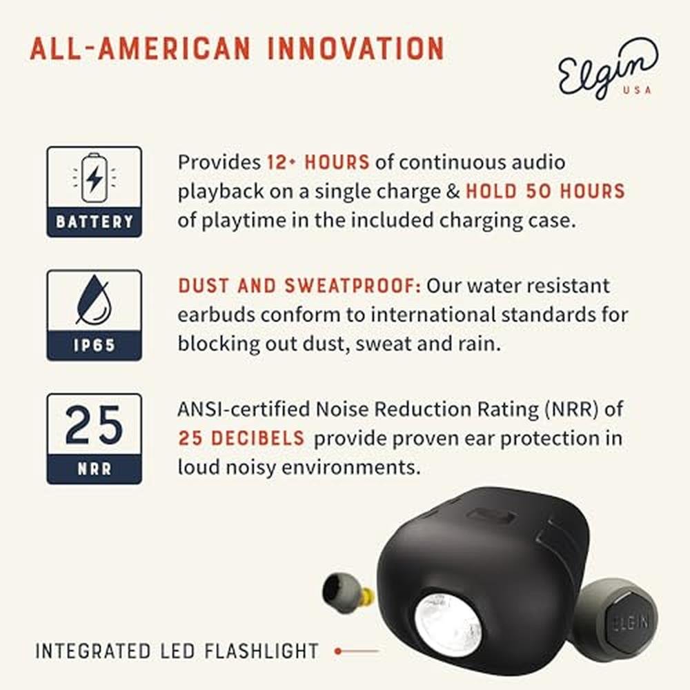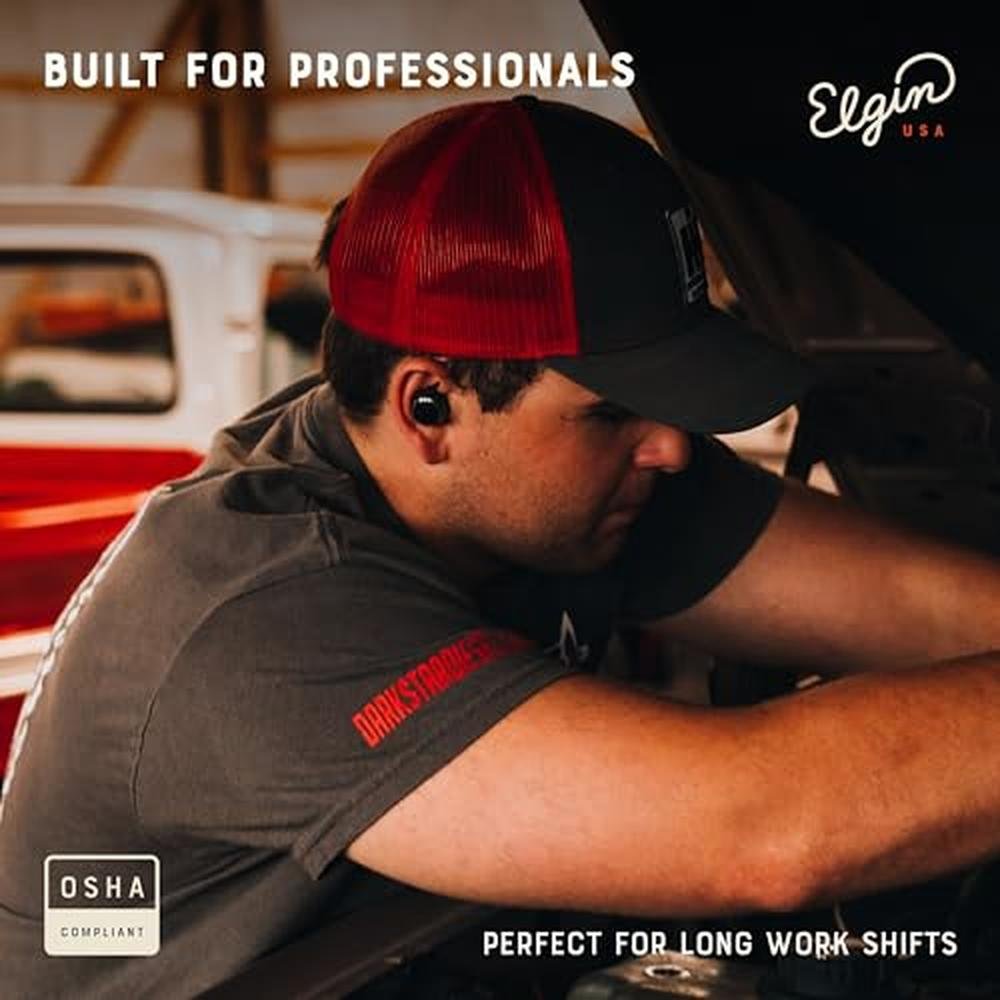 Elgin Rebel True Wireless Earbuds, 25 dB Noise Reduction Bluetooth Headphone, Noise Isolating Mic, 12+ Hour Battery Life, IP65 Water Resistant, OSHA Compliant Hearing Protection for Work