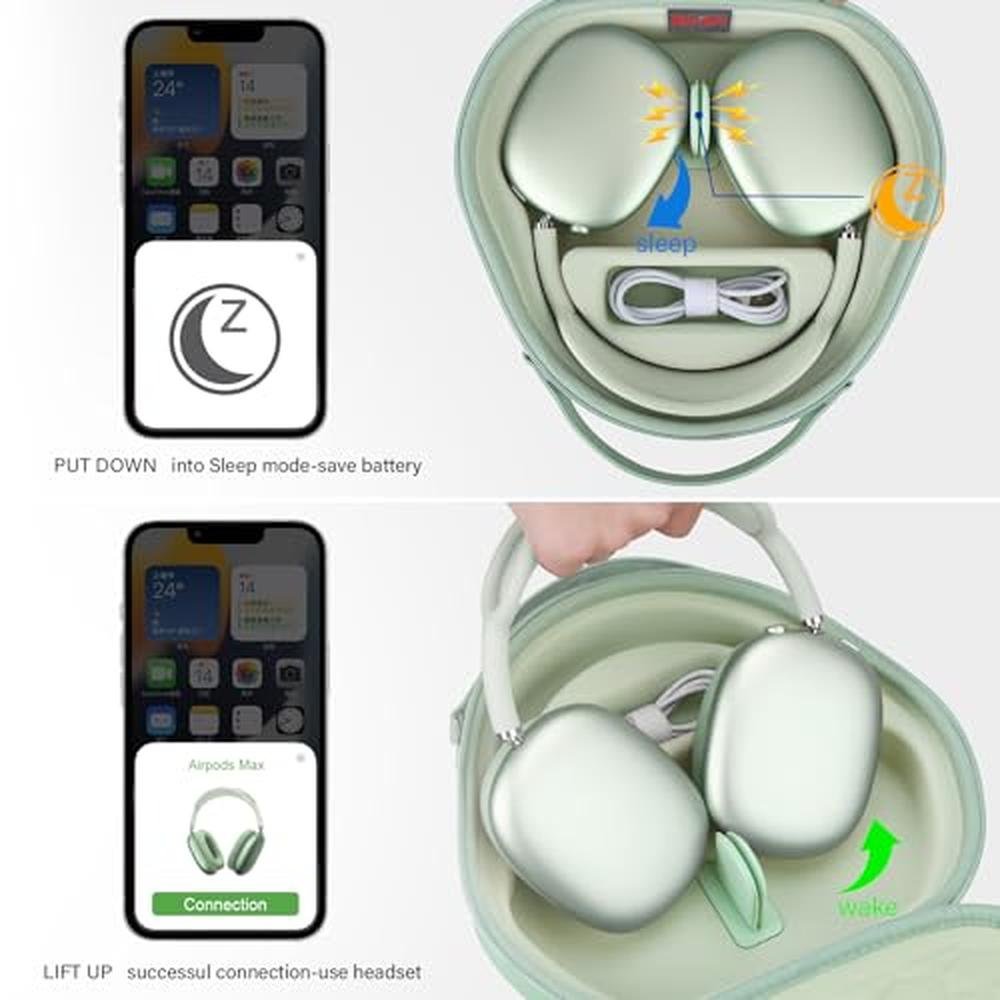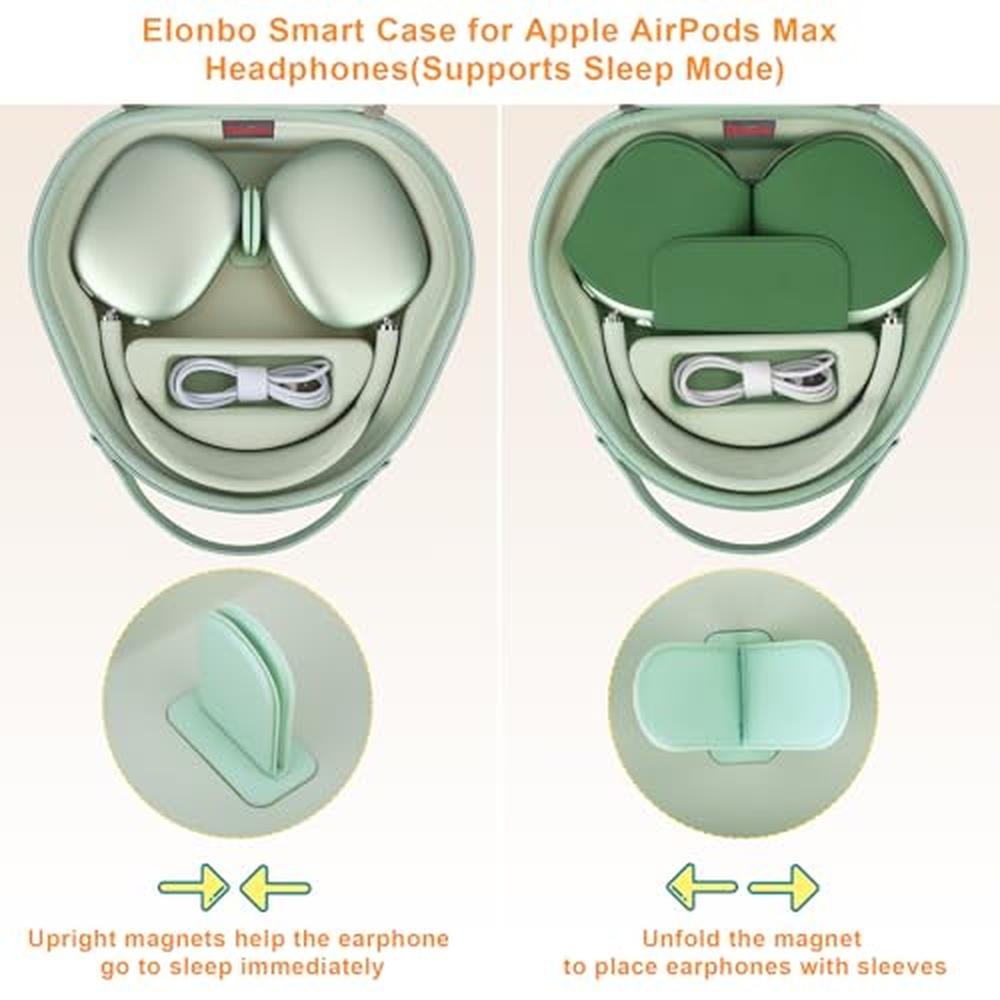 Elonbo Smart Case for Apple AirPods Max Wireless Over-Ear Headphones(Supports Sleep Mode), New AirPods Max Headphones(2024 2020) Hard Carrying Case,Earphone Travel Protective Holder Storage Bag,Green