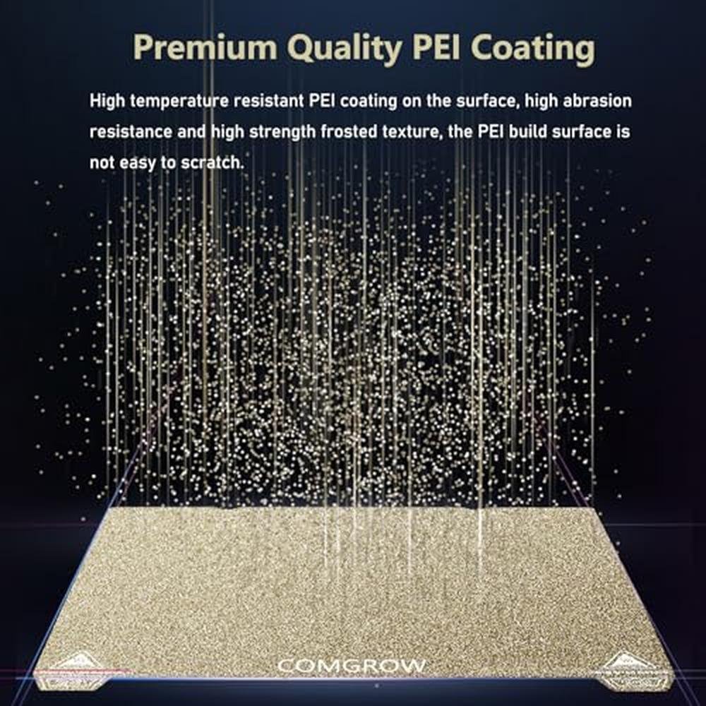 - Premium Quality PEI Coating - The Creality K1 PEI Spring Steel 235x235mm is made of High temperature resistant PEI coating on the surface, high abrasion resistance and high strength frosted texture, the PEI build surface is not easy to scratch.