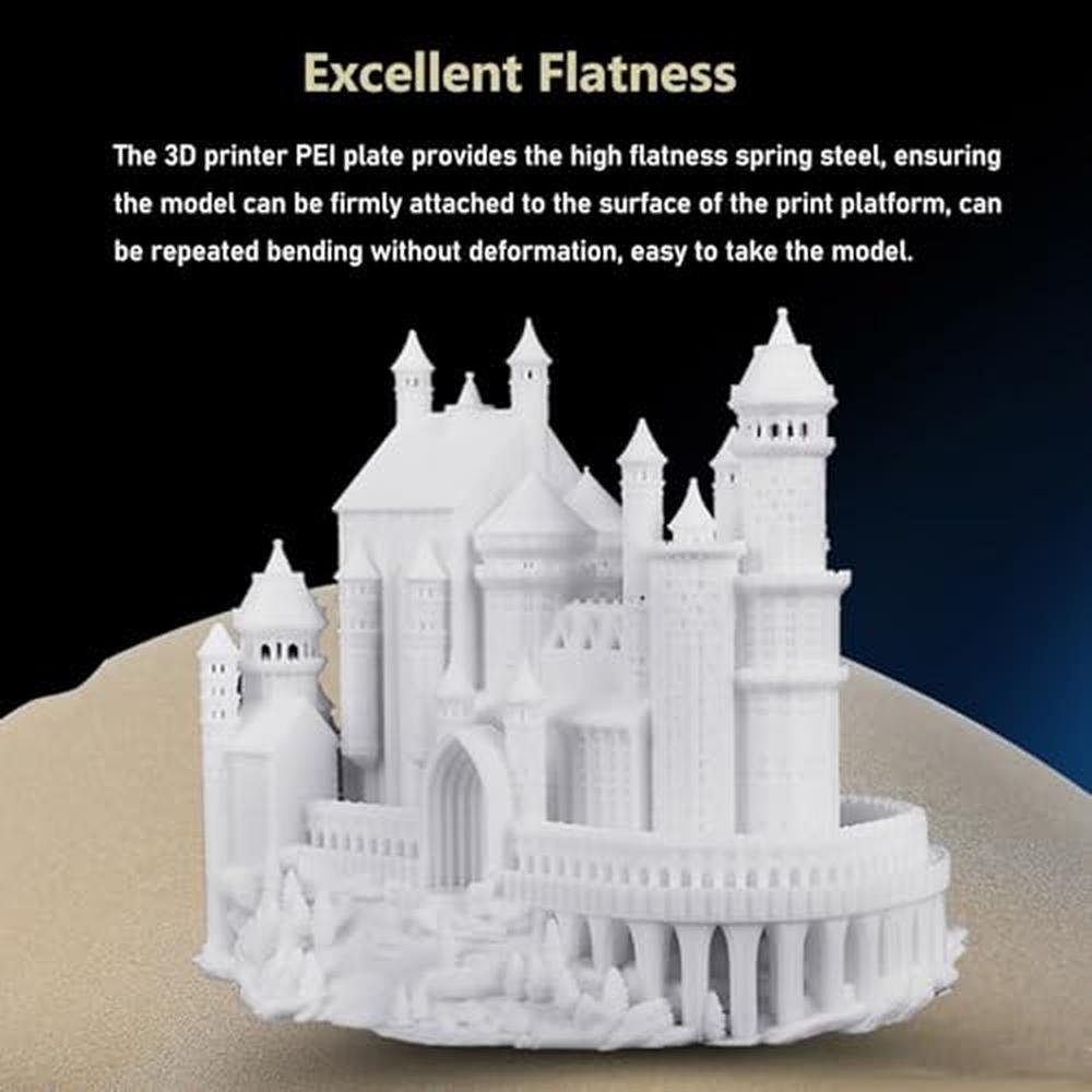 - Excellent Flatness - The Ender 3 V3 KE PEI Magnetic Heated Bed provides the high flatness spring steel, ensuring the model can be firmly attached to the surface of the print platform, can be repeated bending without deformation, easy to take the model.