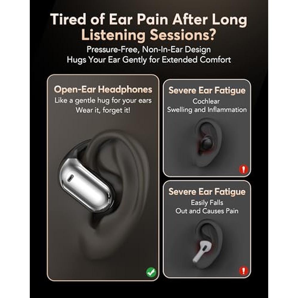 - ALL-DAY COMFORT WITH ULTRA OPEN-EAR DESIGN Stay aware and comfortable with the innovative ultra open ear headphones wireless Bluetooth design. The lightweight 8g earbuds, crafted from liquid silicone with a soft UV oil finish, ensure a silky-smooth feel and secure fit. Perfect for long listening sessions, intense workouts, or when multitasking, these over the ear earbuds combine style and functionality for all-day wear.