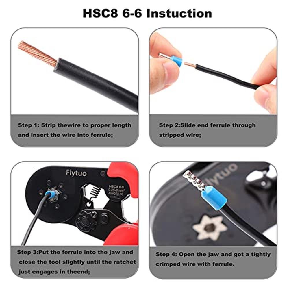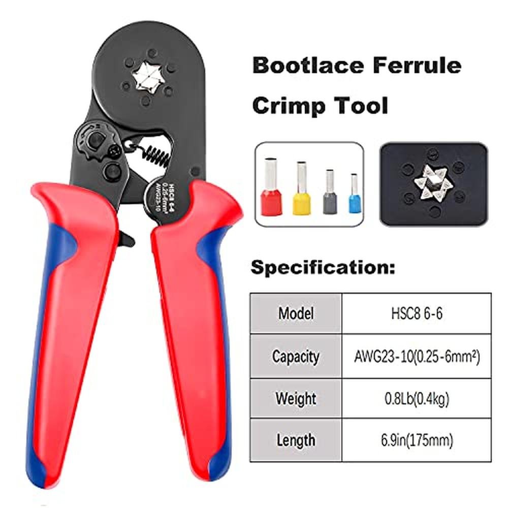 • [Ferrule Crimping Range]: The ferrule crimping tool range is 0.25-6mm/23-10AWG, suitable for most typed insulated, non-insulated sleeve terminals and connectors