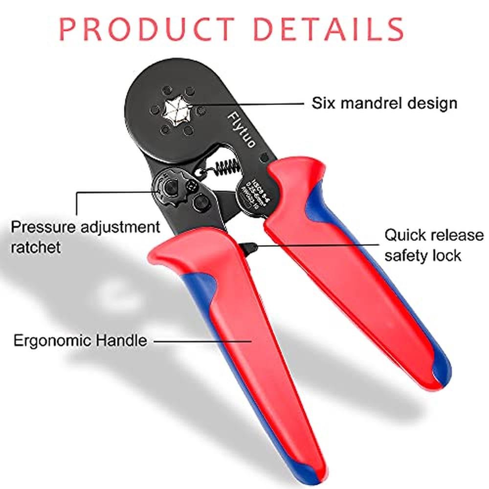 Flytuo Hexagonal Crimping Tool, AWG23-10 HSC8 6-6 Self-adjusting Ratchet Wire Ferrule Crimper Plier for Wire Terminals Cables End-sleeves