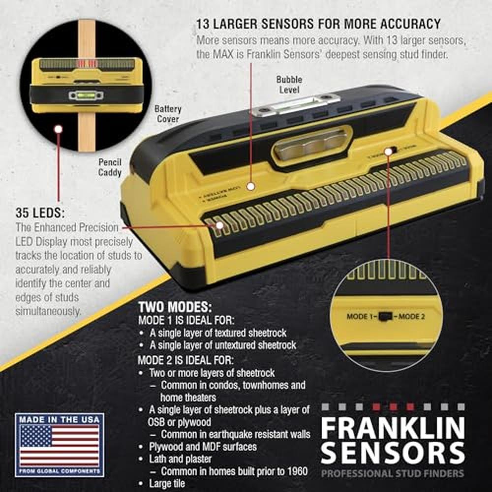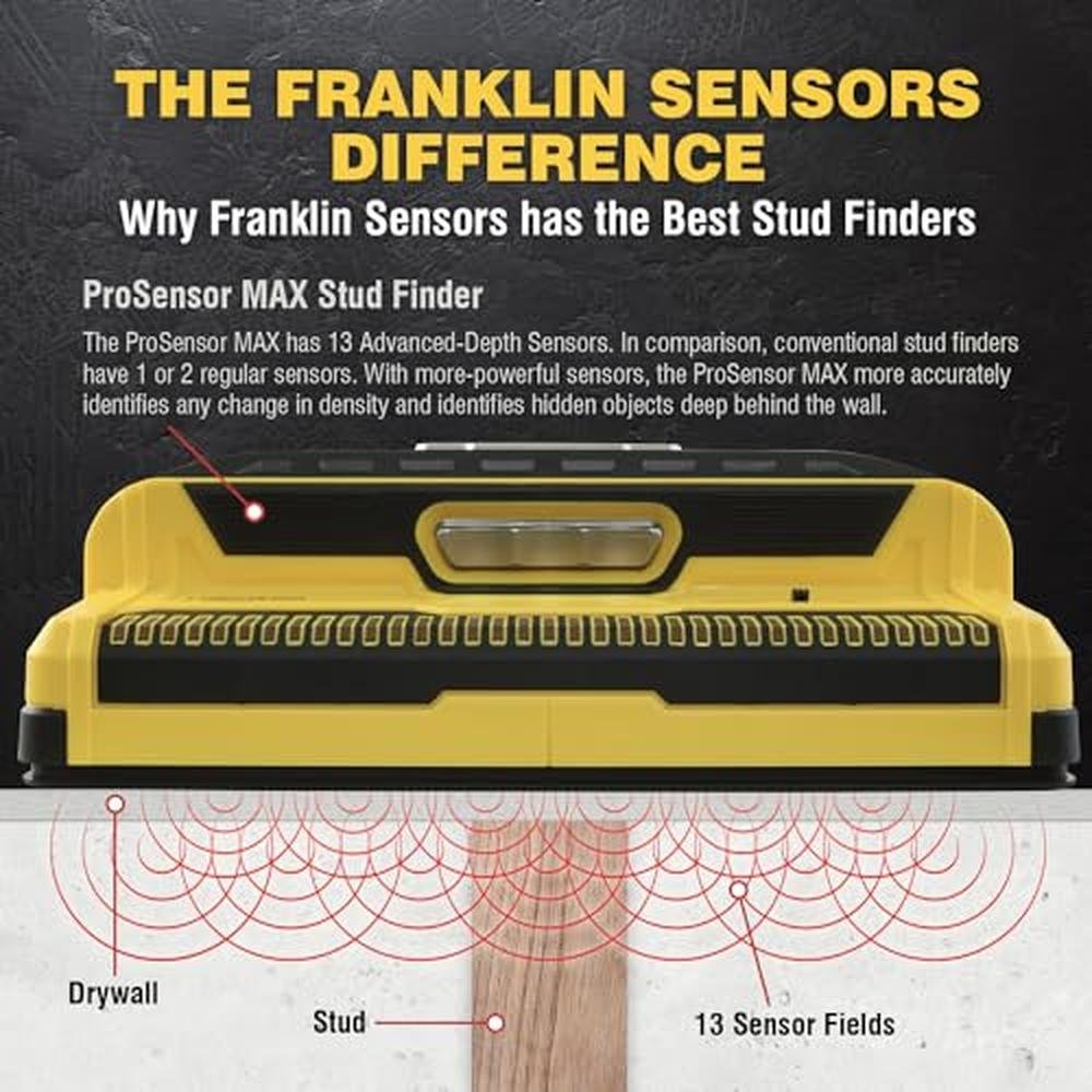 Franklin Sensors ProSensor MAX Stud Finder with 13-Sensors, Wood & Metal Stud Detector/Wall Scanner, Scans Through Plaster, Tile & More, Made in the USA