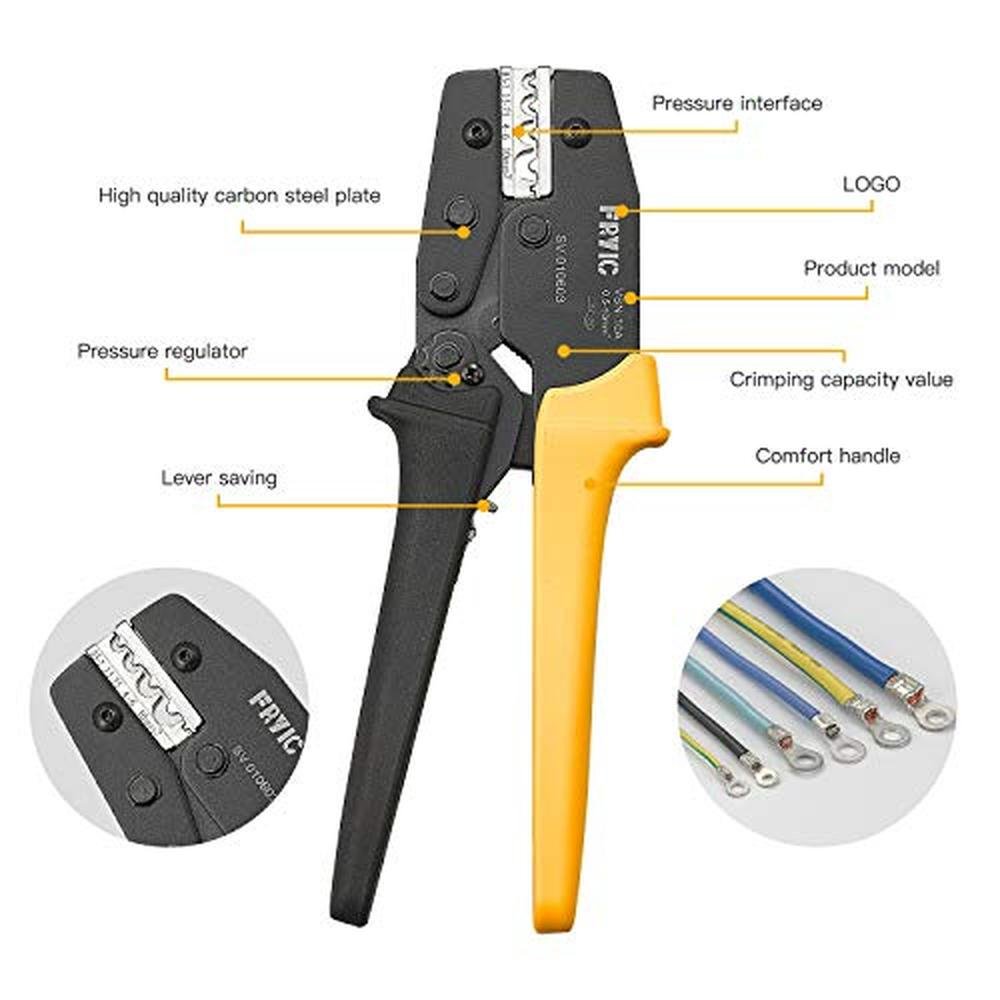 Fryic Ratchet Crimping Plier VSN-10A Used for 20-7 AWG (Similar to 0.5-10 mm) Non-Insulated Terminal Ratchet Wire Crimper