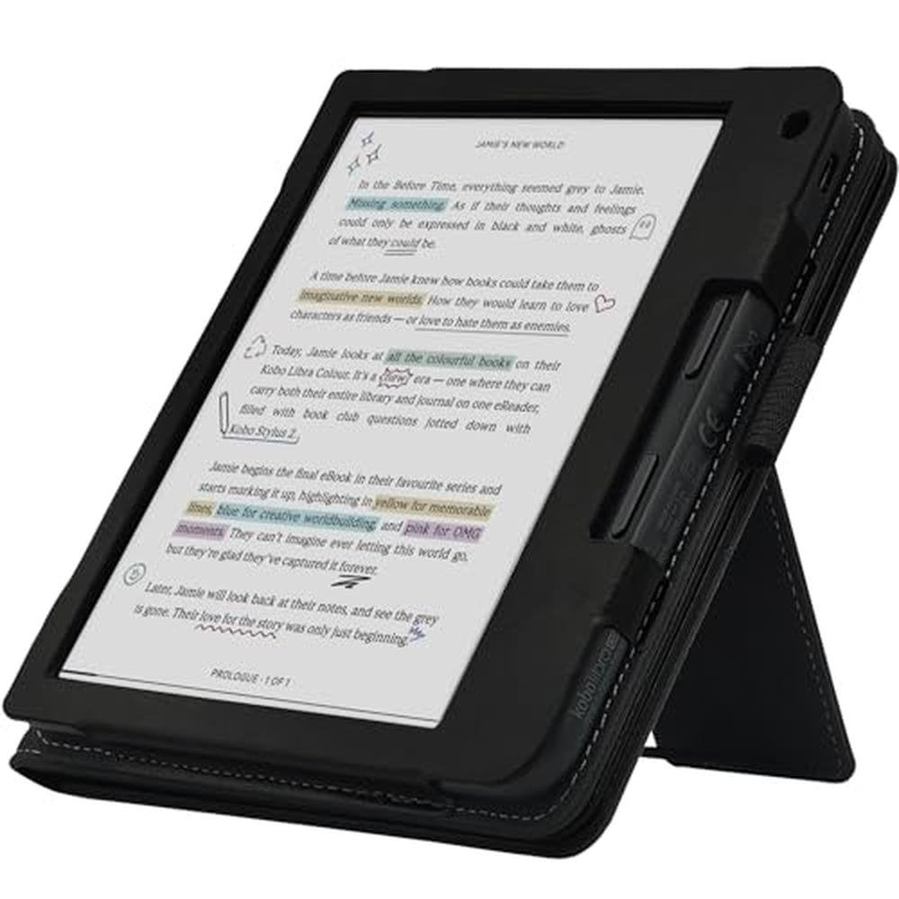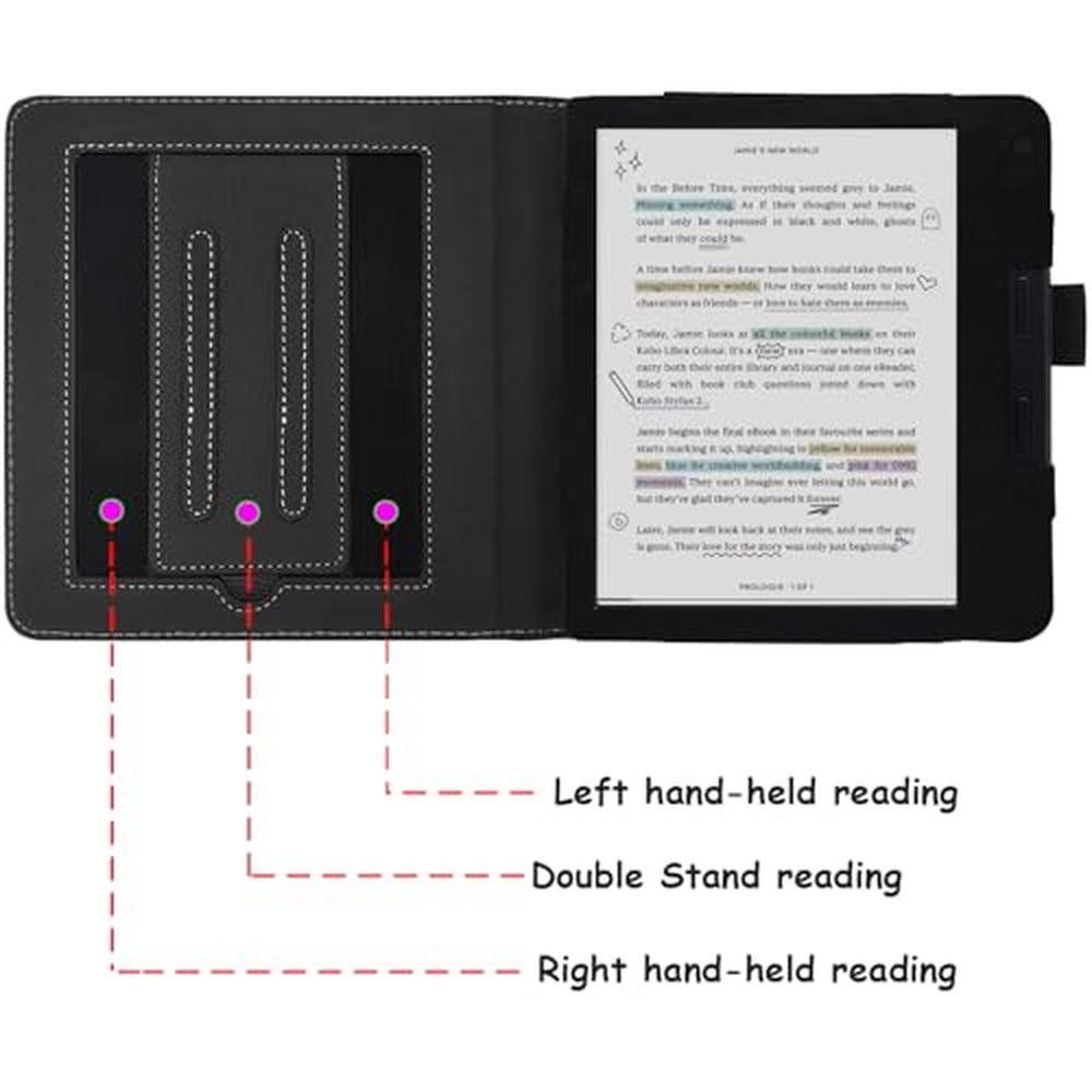 GOVTVA Double Stand Case for 7 Kobo Libra Colour Libra 2 Cover with Auto Sleep Wake Double Hand Strap Magnetic Closure fits Kobo Libra e-Reader (Gentleman Black)