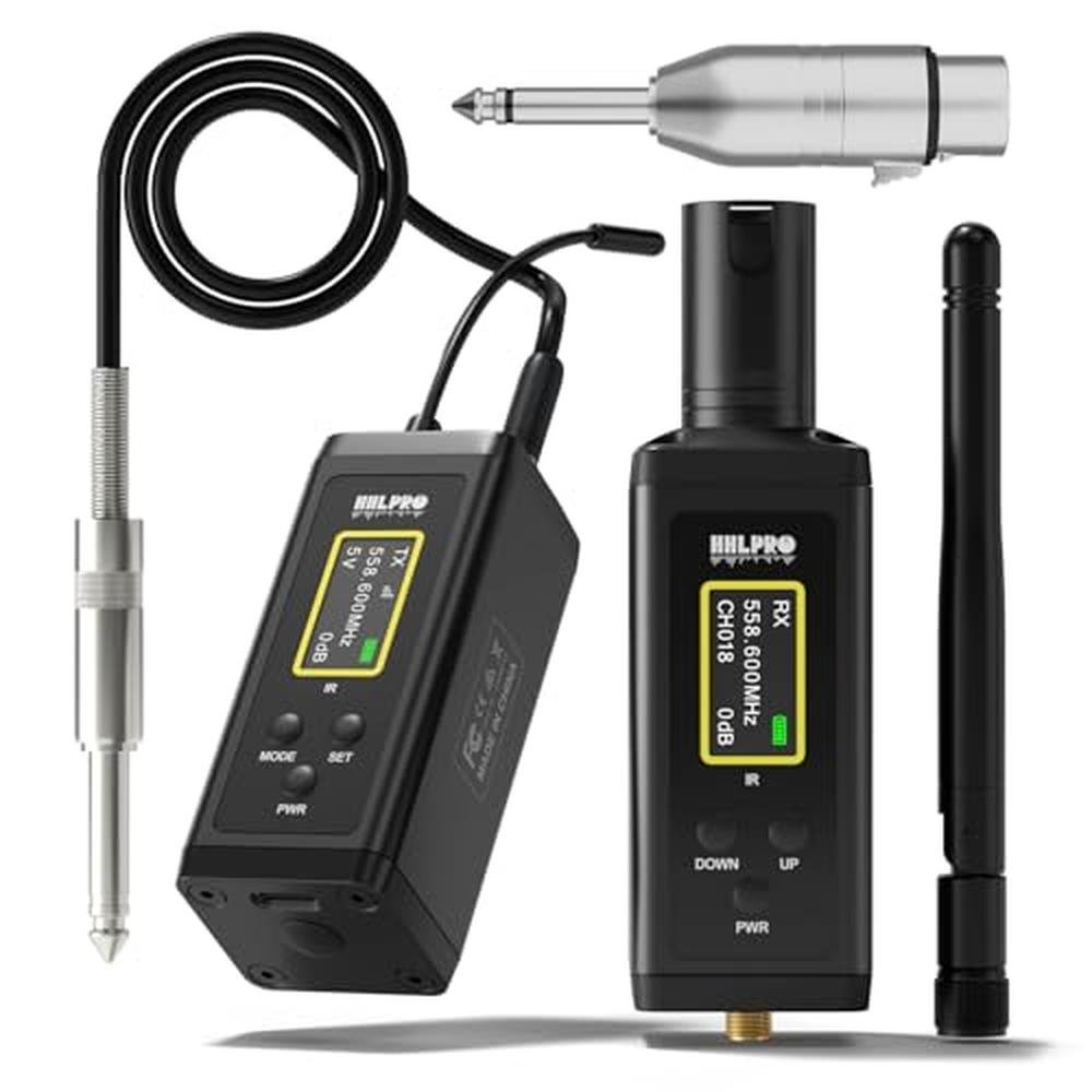 HHLPRO UHF Wireless Guitar System with Antenna,260FT Range,32 Channels,Dual Volume Control,Rechargeable Audio XLR Wireless Guitar Transmitter Receiver for Guitar Bass Electric Instruments