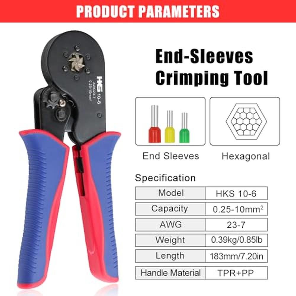 HKS Ferrule Crimping Tool Kit - Hexagonal Ferrule Crimper Plier (AWG 23-7) with 1900pcs Wire End-Sleeves Terminals Kit
