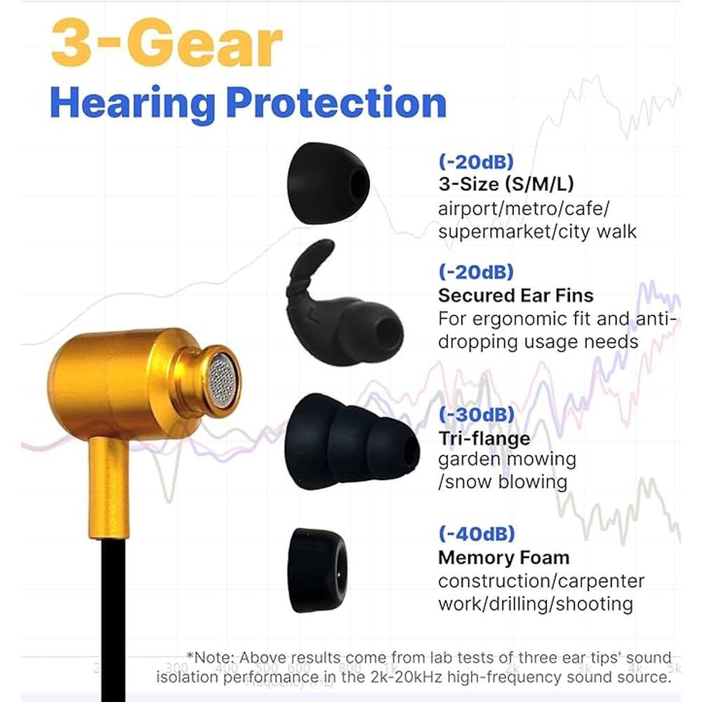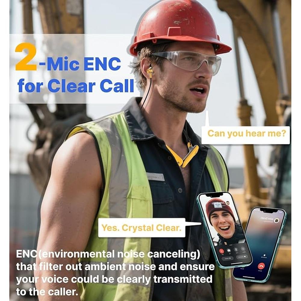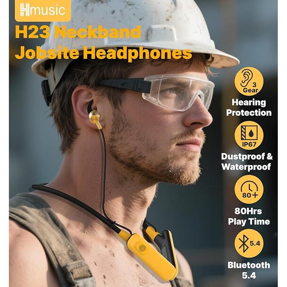 Hmusic H23 Jobsite Neckband Headphones, 30dB Tri-Flange Hearing Protection Earbuds, IPX7 Waterproof, 80Hrs Playtime, Noise Cancelling Mic, Wireless Earplug Headphones for Mowing/Jobsite/Outdoor/Game