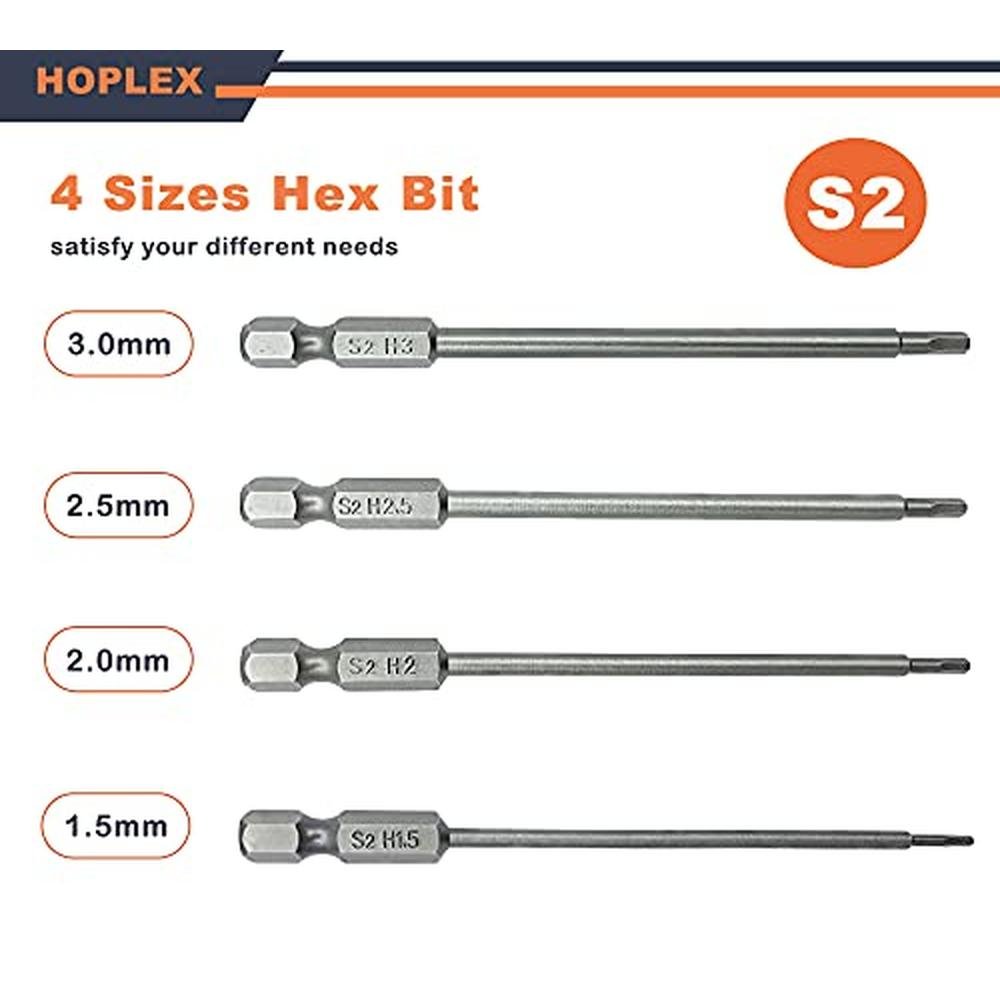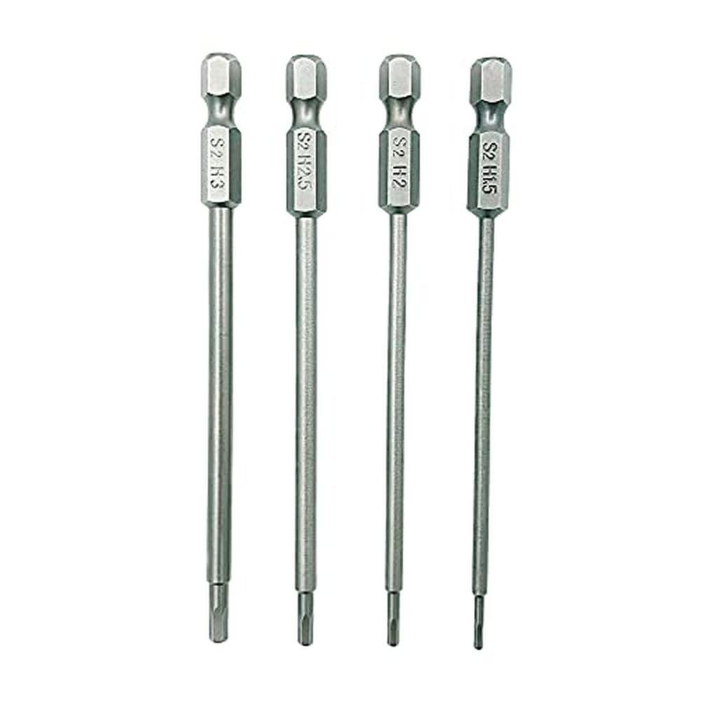 HOPLEX Hex Head Allen Wrench Drill Bit Set 1.5, 2.0, 2.5 & 3.0mm Upgrading of S2 Steel 1/4" Hex Shank 3.9" Long for Screwdrivers Bit Electric Screwgun/Power Drill RC Repair Working
