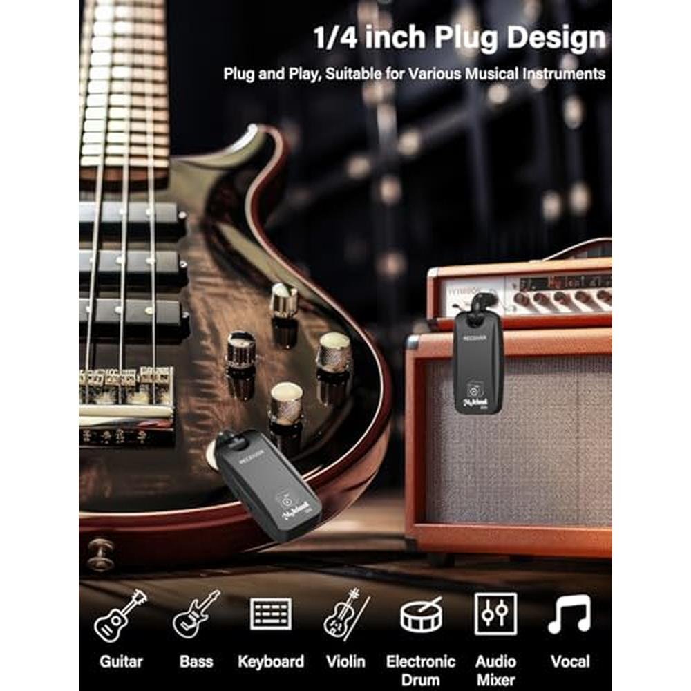 - 190 rotatable 1/4" plug designWidely applicable to all audio devices with 6.35mm jack. Guitar wireless system is suitable for most electric guitars, basses, electric guitars, and even guitars with tremolo systems.