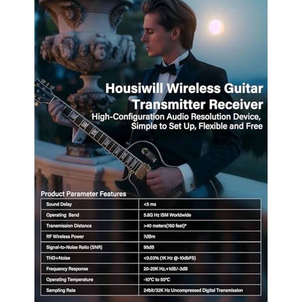 Housiwill 5.8GHz Wireless Guitar System, Rechargeable Wireless Guitar Transmitter Receiver Guitar Accessories Audio Wireless Transmitter Receiver for Electric Guitar Bass