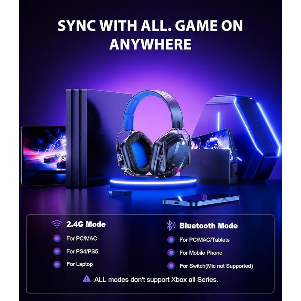 HW12 Wireless Gaming Headset with Microphone 2.4GHz Bluetooth Gaming Headphones Wireless of Duty/FPS Gamers,50Hr Battery Life Gamer Headset for PS5,PS4,PC,Switch,Mac