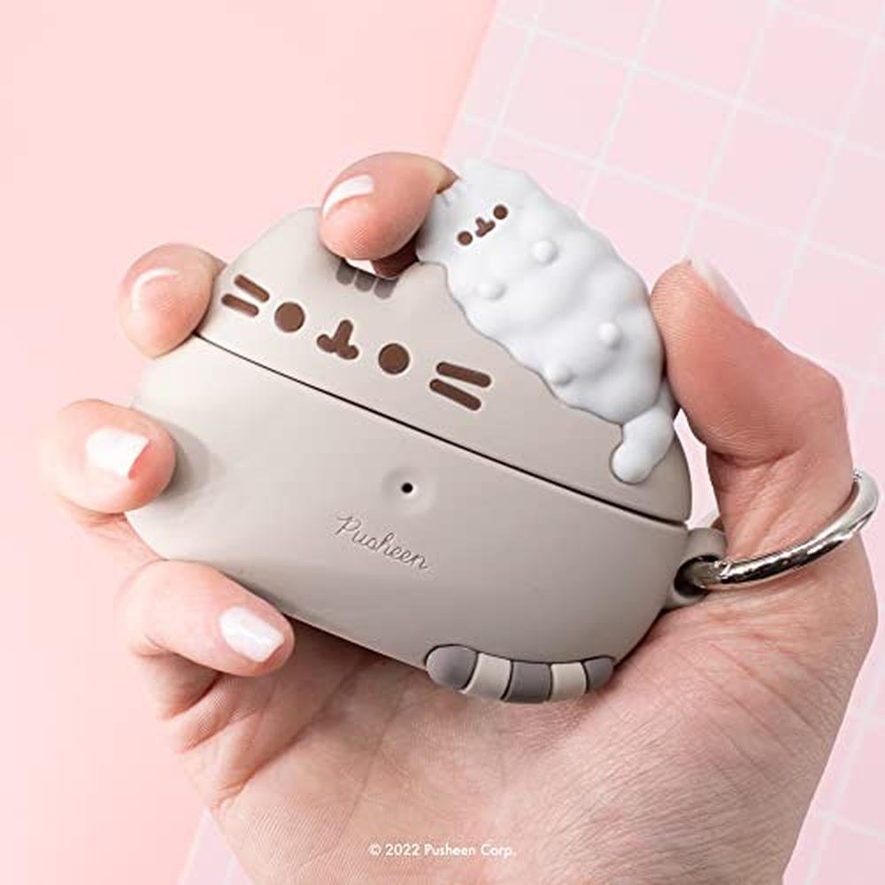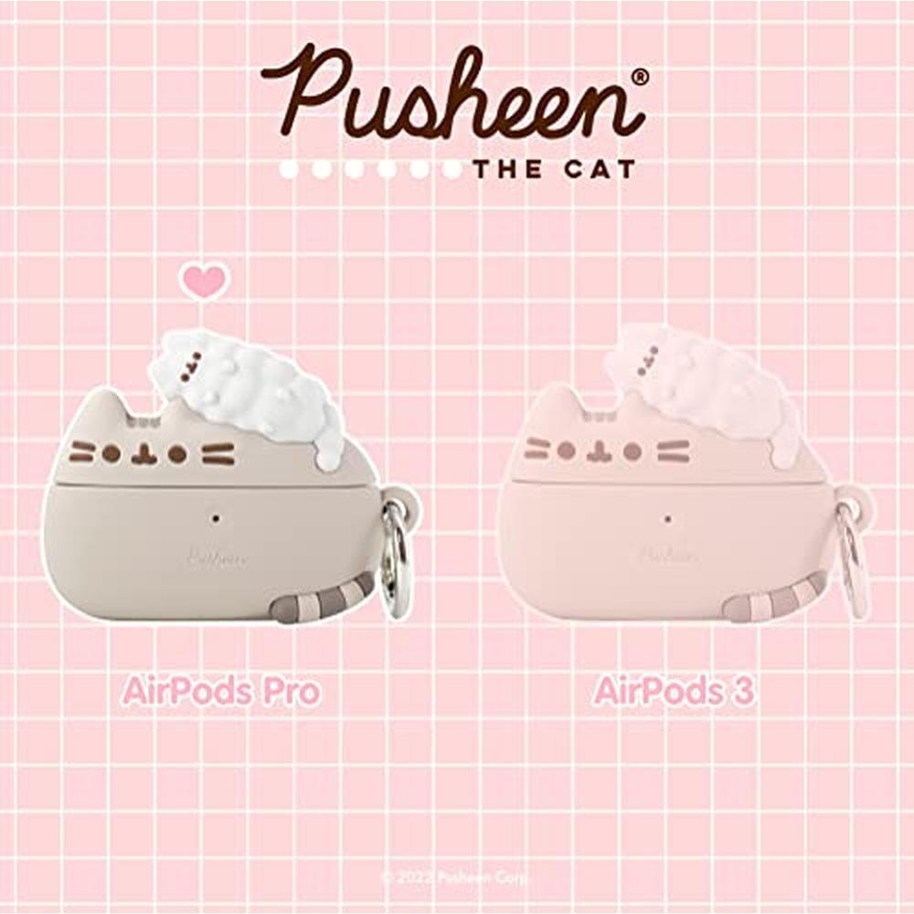 Your AirPods just got cuter These adorable AirPods cases - featuring Pusheen the Cat and her little sister, Stormy - keeyour AirPods safe and protected in style Thin enough to allow wireless charging through Apple s wireless charging case, these covers provide extra protection against dirt, moisture, and impact while transforming a plain AirPods case into an adorable accessory you ll love to show off Pusheen AirPods cases include an aluminum carabiner clifor attaching to bags, backpacks, and purses to helyou keetrack of your AirPods on the go, and include an opening above the front LED power indicator keeping it visible so you can easily see when your AirPods are charging. AirPods Cases Super cute and super convenient, these cases are perfect for keeping your AirPods safe while on the go. Made of durable, elastic silicone material, they provide droprotection plus a secure looto attach your AirPods case to your bag or backpack using the included carabiner clip. Tested to work with QI Standard wireless chargers - charge your 2nd-Generation AirPods or AirPods Pro without removing the case. To remove push gently from the end opposite from the lid opening. For AirPods Pro and AirPods 3rd Gen.