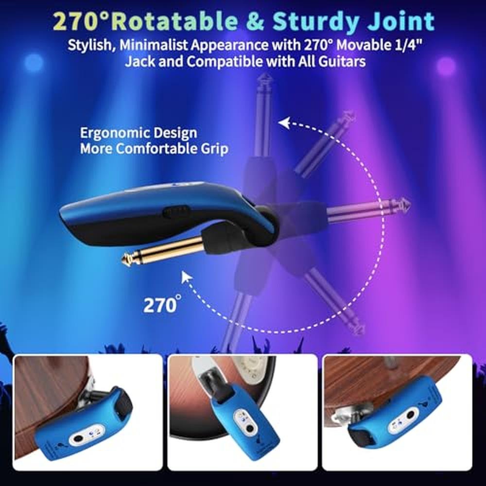 INGPARTNER A9 Wireless Guitar System 2.4GHz Built-in Rechargeable Lithium Battery 270Rotatable Audio Wireless Transmitter Receiver for Acoustic Guitar Bass Violin Keyboard Electric Instruments, Blue