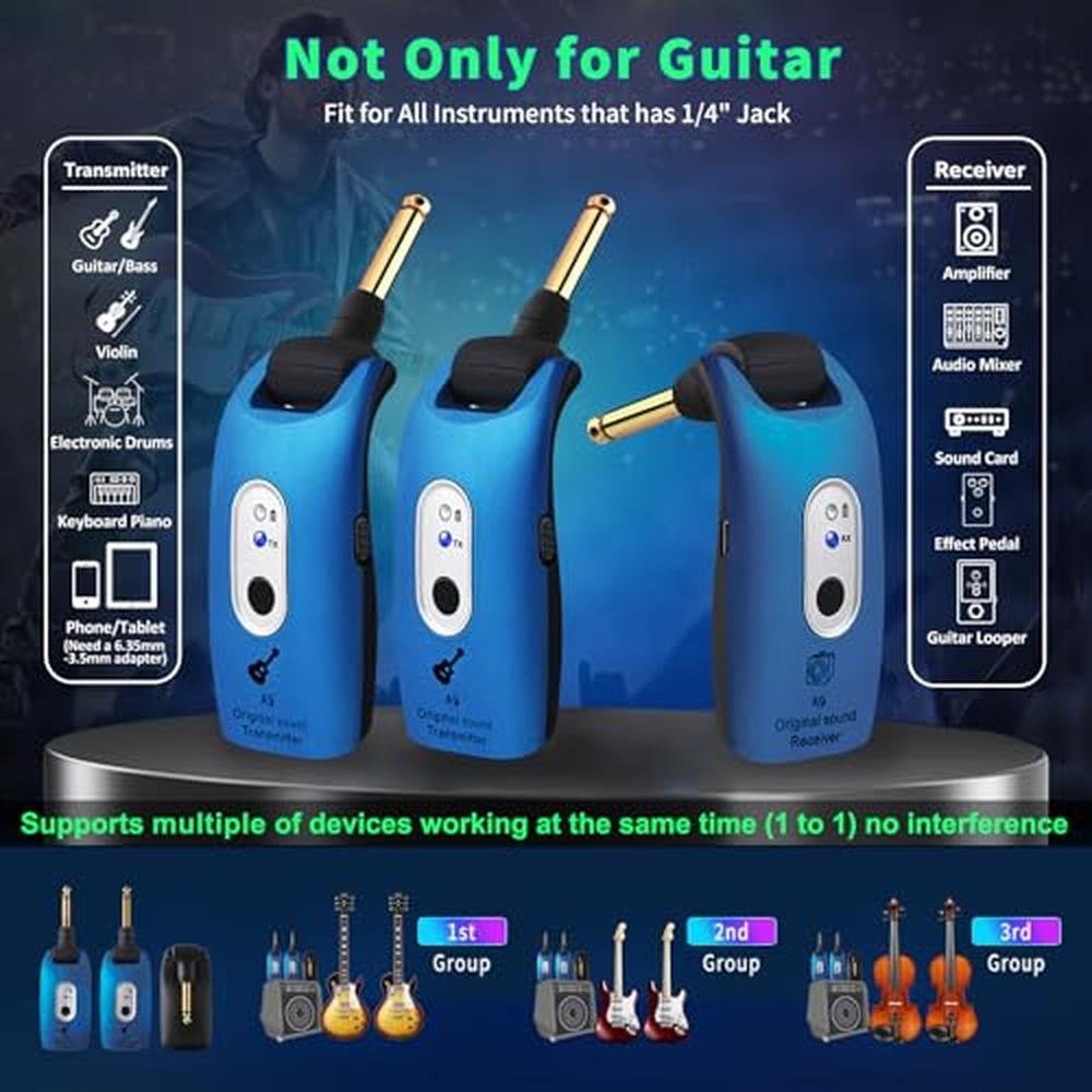 - Worldwide Used: Our guitar wireless transmitter, 270 rotatable1/4" plug design6.35mm plug, compatible for electric guitars, electric basses, acoustic guitars,violin, keyboards, and other digital music instrumentseven suitable for electric saxophone
