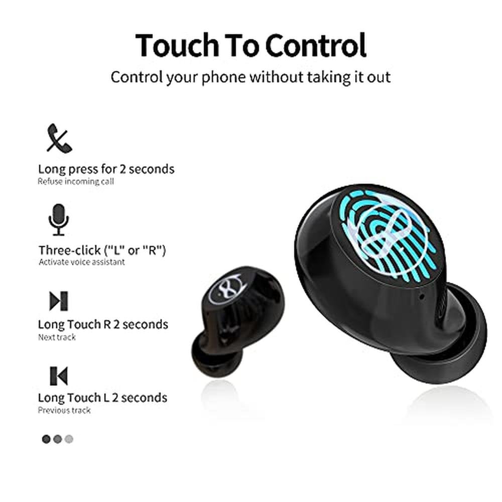 • Instructions for operation and use: Specific touch control functions make it more convenient. Quick tap 2 on the left or right earbuds of K62: pause or play to switch between each other. Quick tap 2 on the left or right earbuds: answer a call. Long press for 2 seconds: reject the call. Left tap 3: voice control operation. Right tap 3: switch between music or game modes. Long press left once: previous song, long press right once: next song. Left click 1 down: decrease volume, right click 1 down: increase volume.