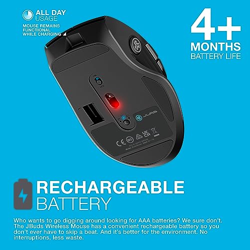 JLab JBuds Wireless Mouse | Premium Bluetooth Connectivity | Up to 3 Device Toggle