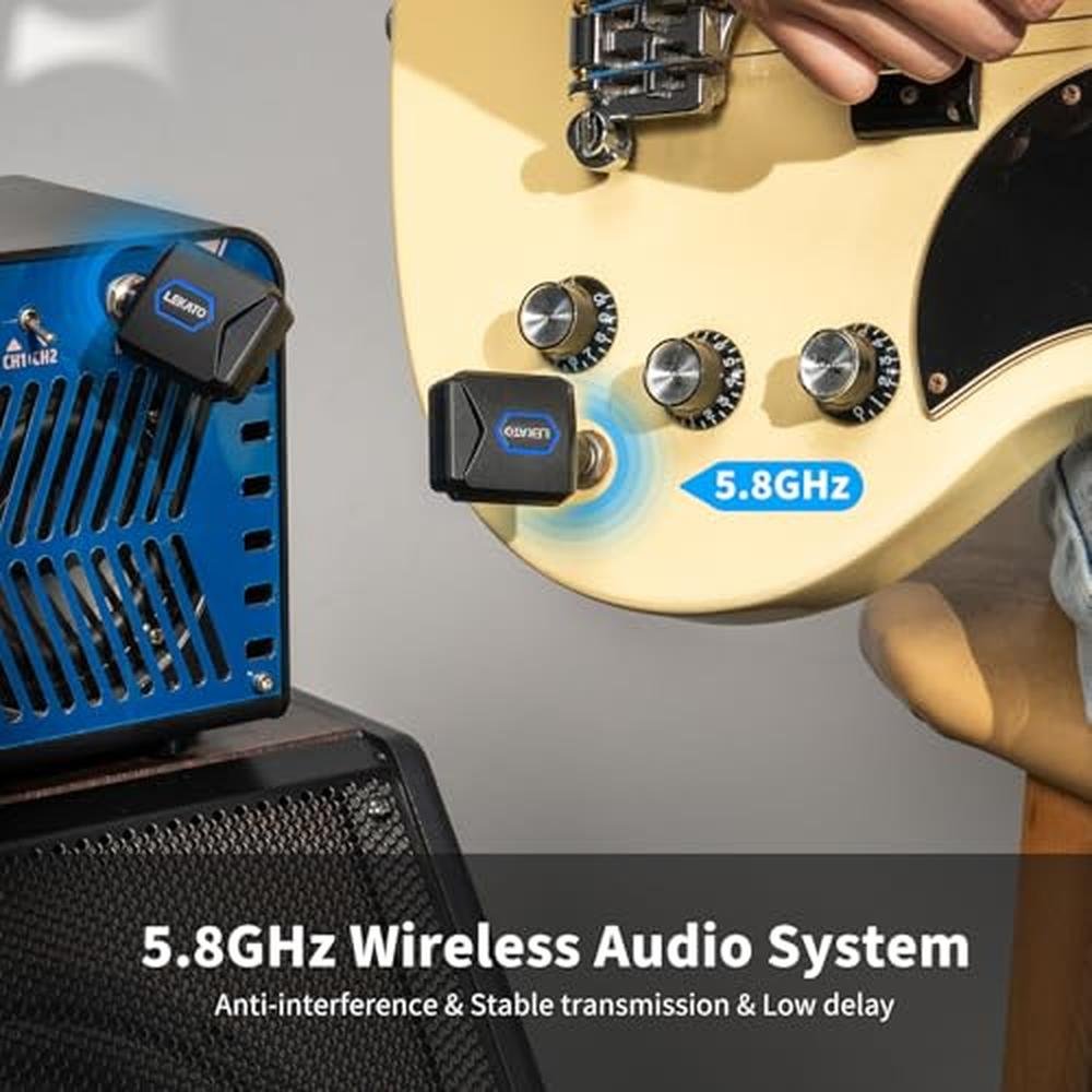 - 5.8Ghz Frequency Band: LEKATO wireless guitar system adopts 5.8GHz band with higher bandwidth, higher transmission rate and stronger anti-interference ability, which is specially designed to solve the problem of high quality audio transmission. As 2.4G Bluetooth and WiFi are widely used, which occupy the 2.4GHz channel, the 5.8GHz band is more stable than the 2.4GHz band