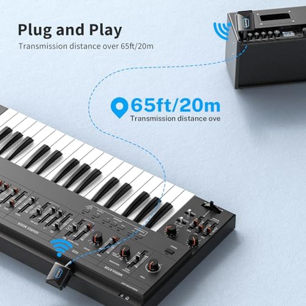 - Stable and Clear Signal transmission: 5.8GHz wireless guitar transmitter and receiver adopts 24bit / 48KHz stereo lossless digital transmission sampling rate, clear sampling in the frequency range of 10Hz to 22kHz, almost no signal loss, lower transmission noise, <6ms delay. Stable transmission of more than 20 metres, transmitting more pure and pristine guitar sound quality