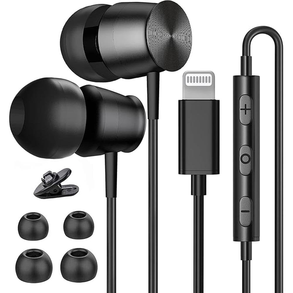 Lightning Headphones for iPhone 13 14 12 Pro Max MFi Certified Lightning Earbuds with Mic Noise Isolation Stereo Bass in-Ear Headphones Lightning Connector Wired Earphones for iPhone 11 XR SE