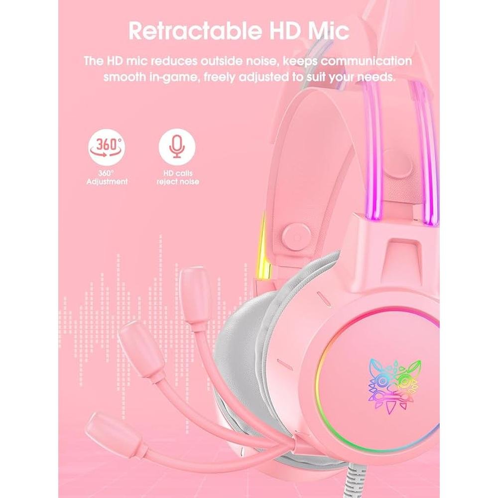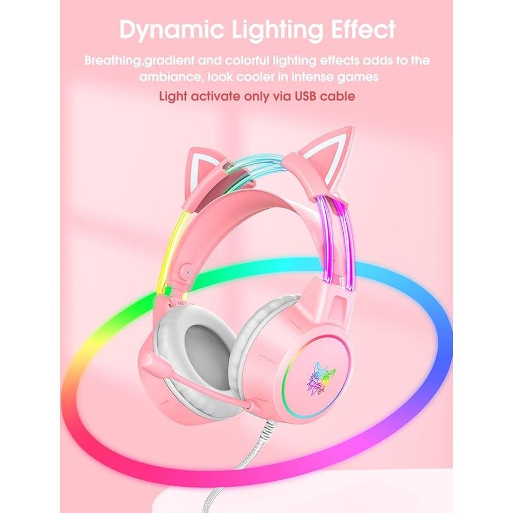 Lightweight Gaming Headset with Detachable Cat Ears, RGB Lighting, Wired Over Ear Headphones with Mic for PC, PS4, PS5, Xbox, Switch, Stereo Surround Sound, Self-Adjusting Headband